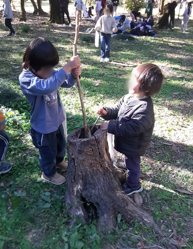 青空の下、友だちと一緒にたくさん身体を動かして、たくさんの「不思議」を見つけてあそびをどんどん発展させていった子どもたち。
