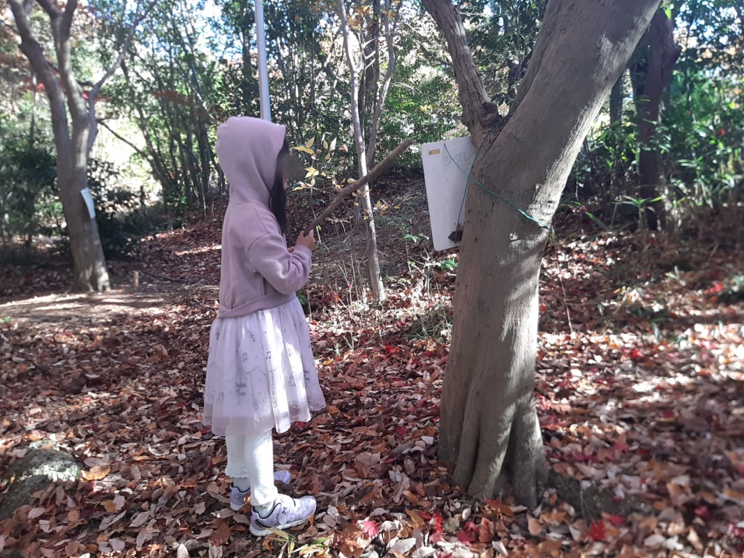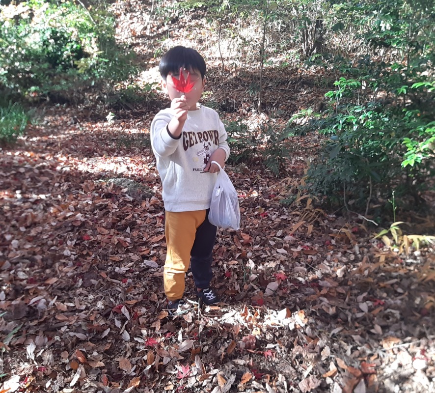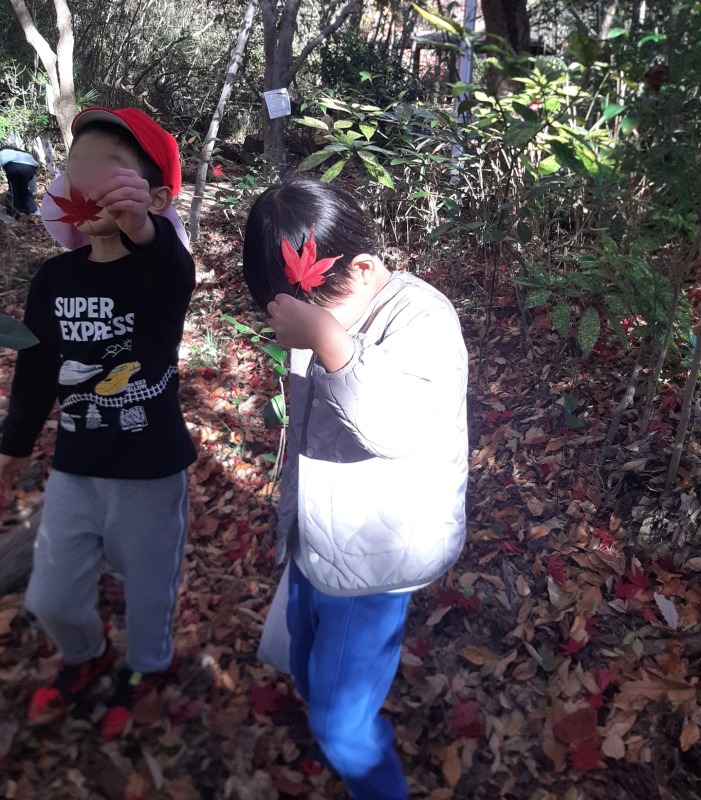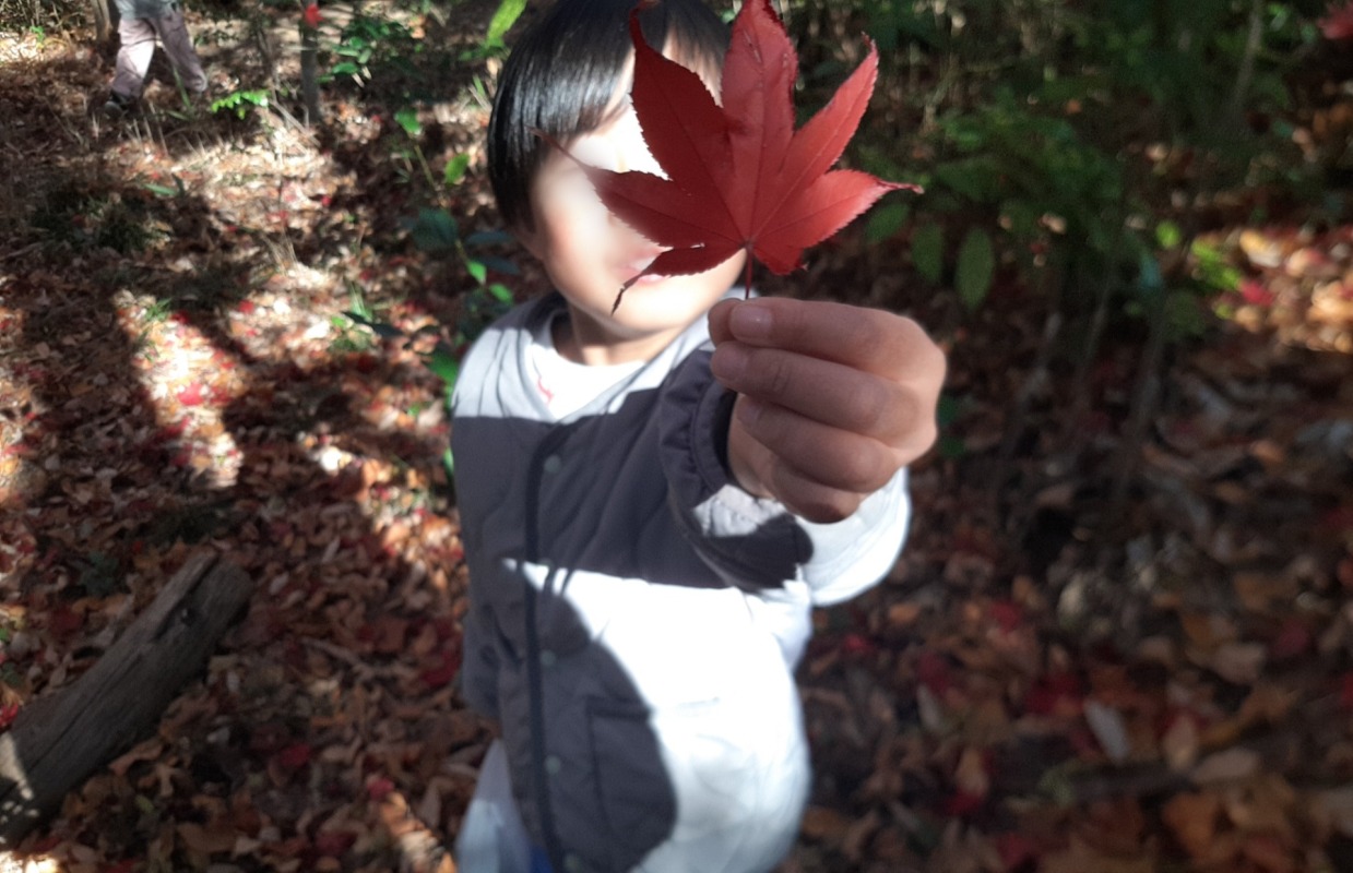 お弁当の後の自由あそびの時間、モミジがキレイな場所を発見!