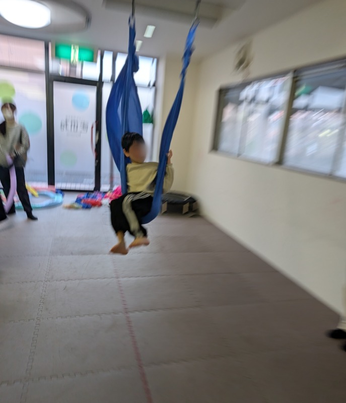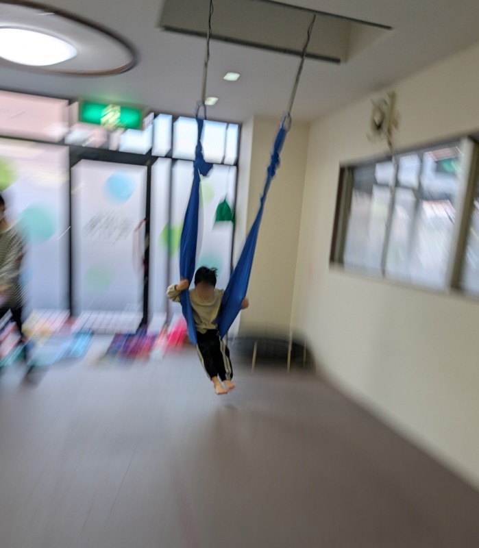 2026.3.12 高速ハンモック 日々のこと ハンモック、こんなに速く漕げるようになったよ!見ててね!自分の力でしっかり漕げてます。腕や脚の力が付き、体幹が整ってきて、姿勢をしっかり保持できるようになり、全身を連動させることで、こんなに速く大きく漕ぐことができます。きのねの自由な室内あそびの中で、たくさんの力が付いていきます。