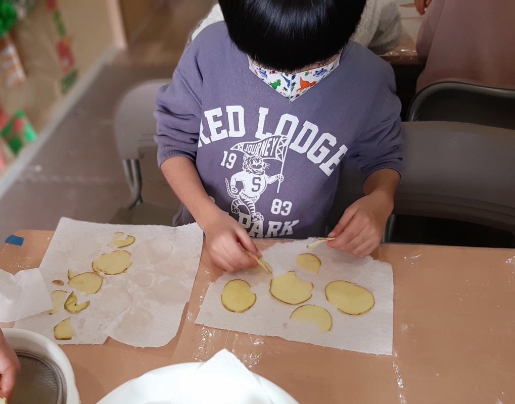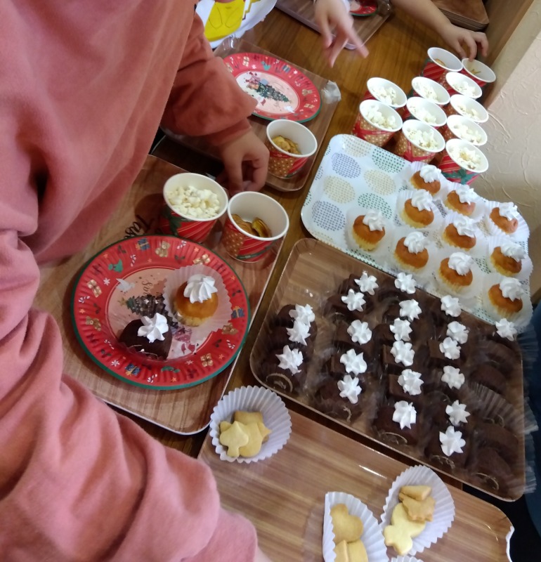子どもたちが作ったクッキーやポテトチップスも並んで、みんな大喜びでした♪