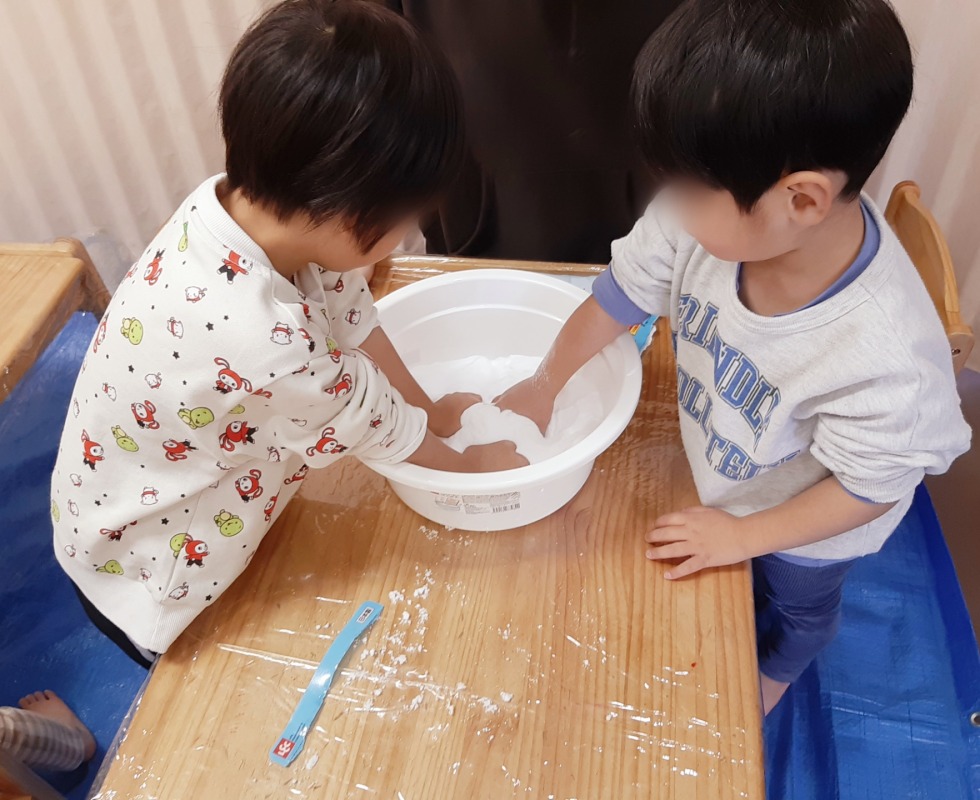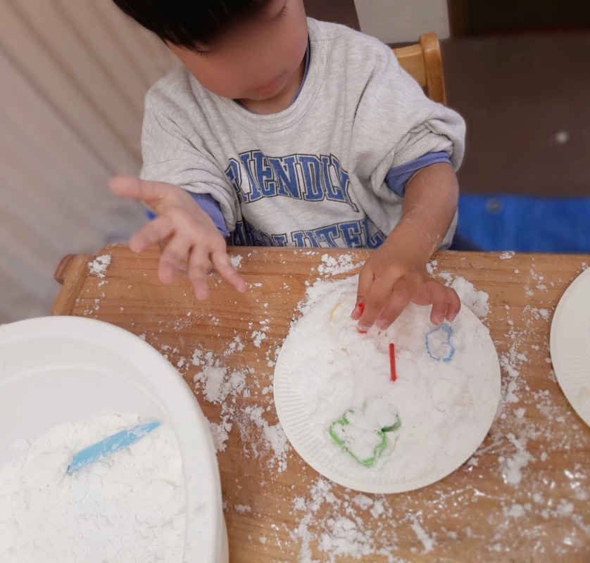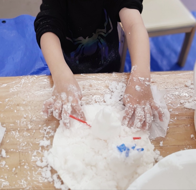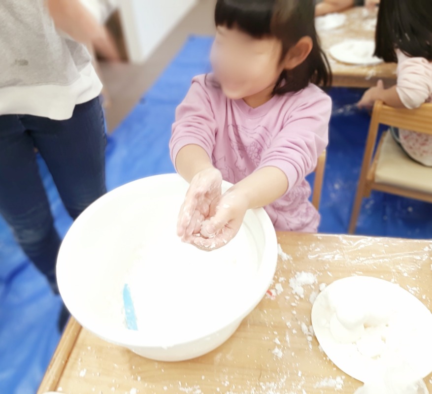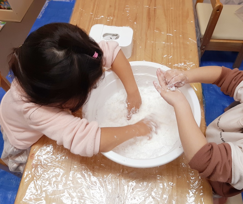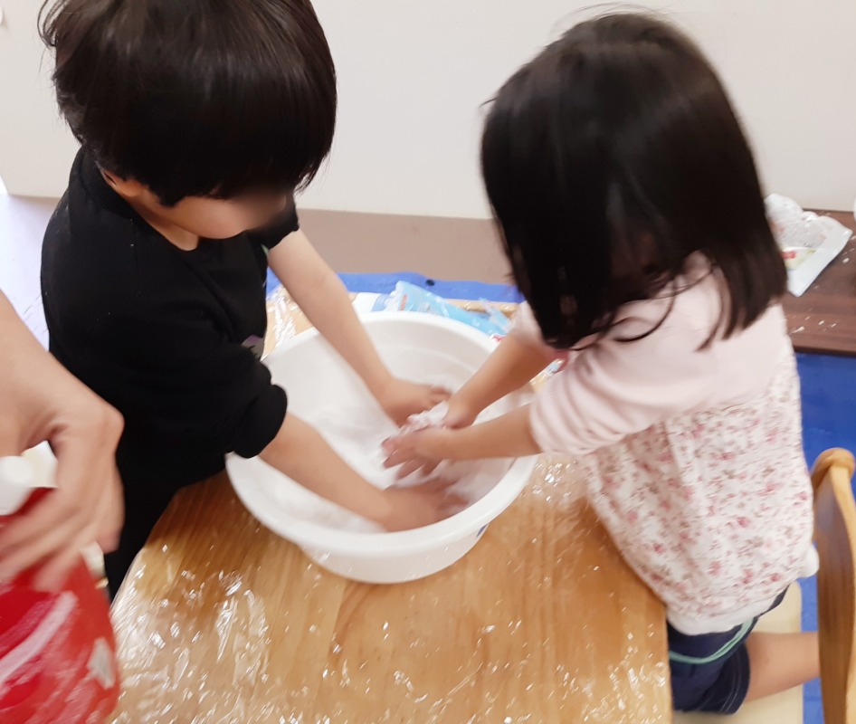 手作りスノーで感覚あそび。