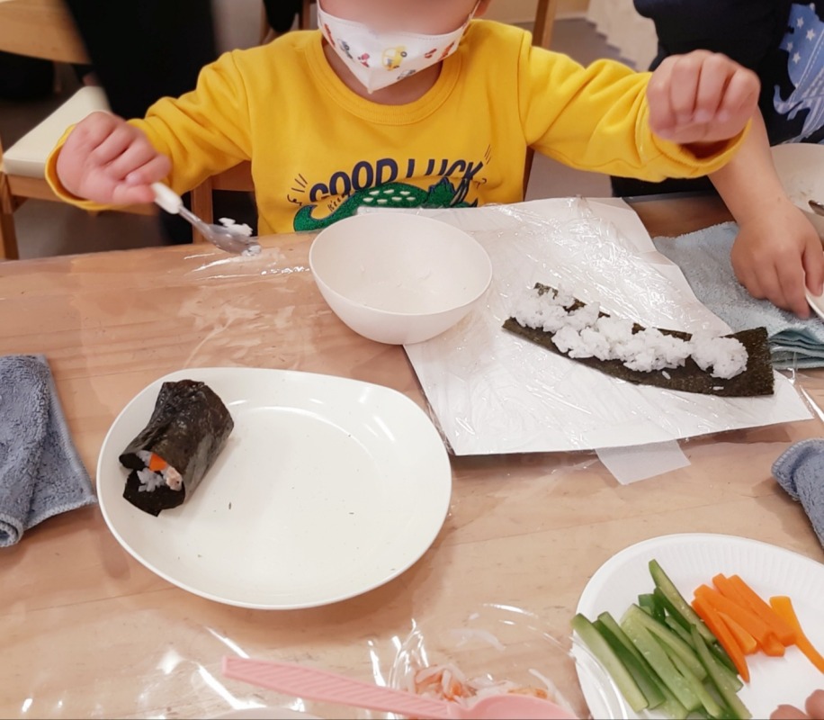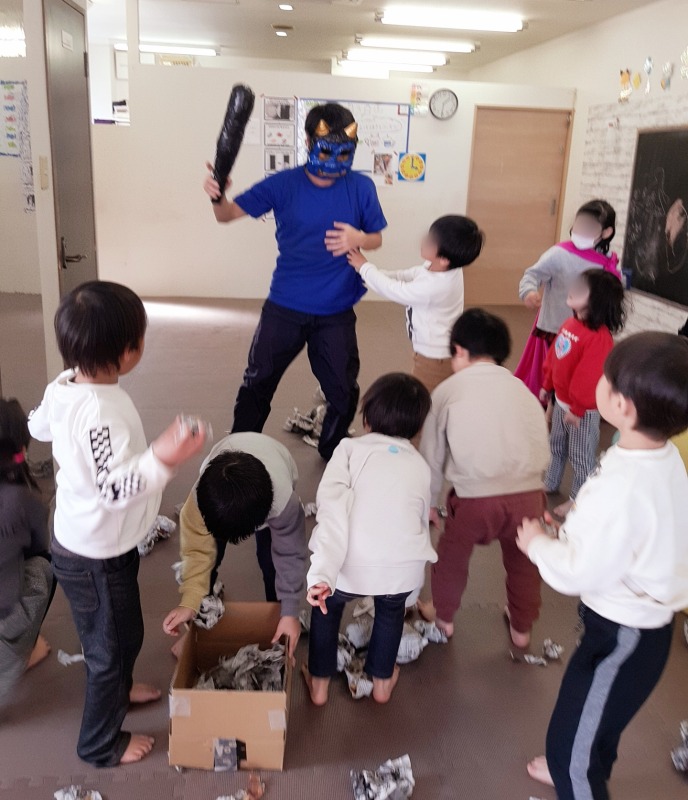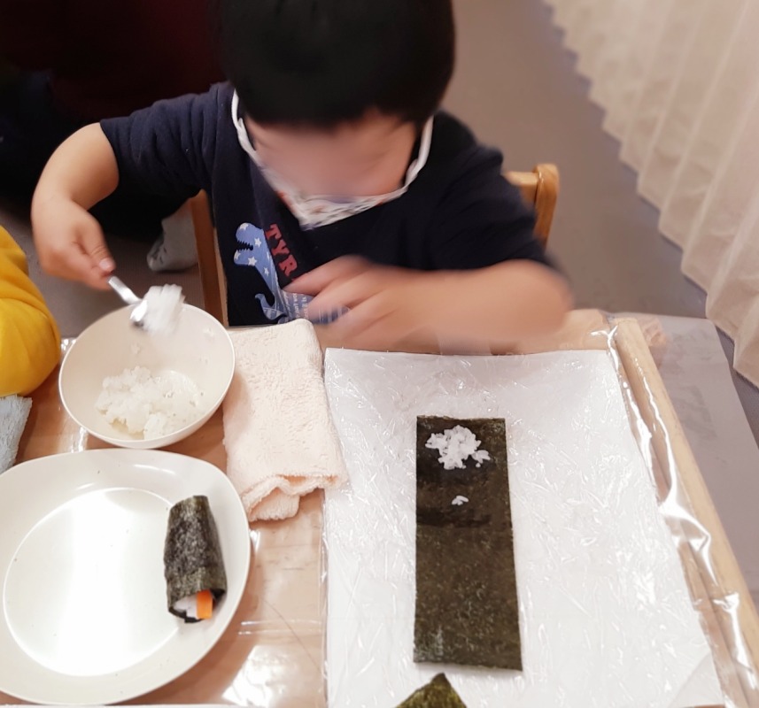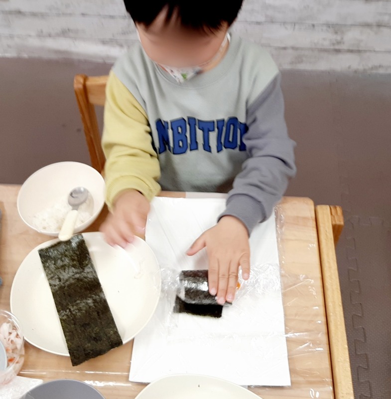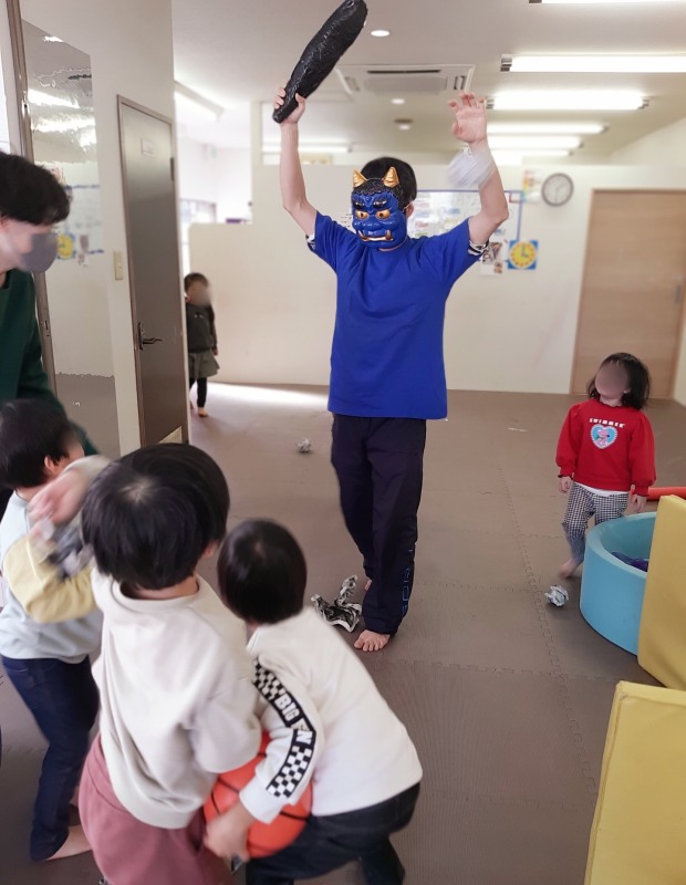 2024.2.5 きのね 恵方巻きづくりと豆まき 日々のこと 2月3日の節分当日、きのねてはランチに恵方巻きづくりをしました。難しいところはスタッフに手伝ってもらいながら、自分でできるところは頑張り、自分だけの恵方巻きができあがりました!いただきまーす!野菜も食べれたよ♪鬼さんが来ても、みんなで協力しながら勇敢に戦いました!
