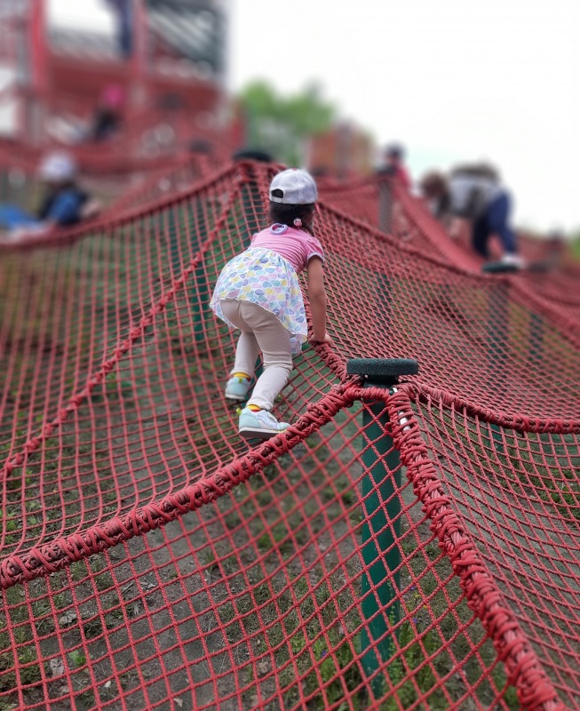2021.5.15 大きなすべり台とネット遊具 日々のこと 小幡緑地(西園)にお出かけしました。とっても大きいネット遊具に大喜び。ちょっと怖かったけど、何度も挑戦して、上まで登れました。こんな大きい滑り台も。広い公園で、のびのびあそぶと、自然と笑顔になるね。今日もとっても元気なきのねの子どもたちです。