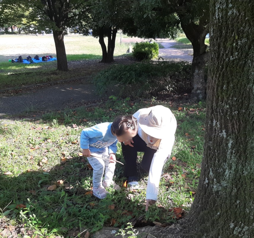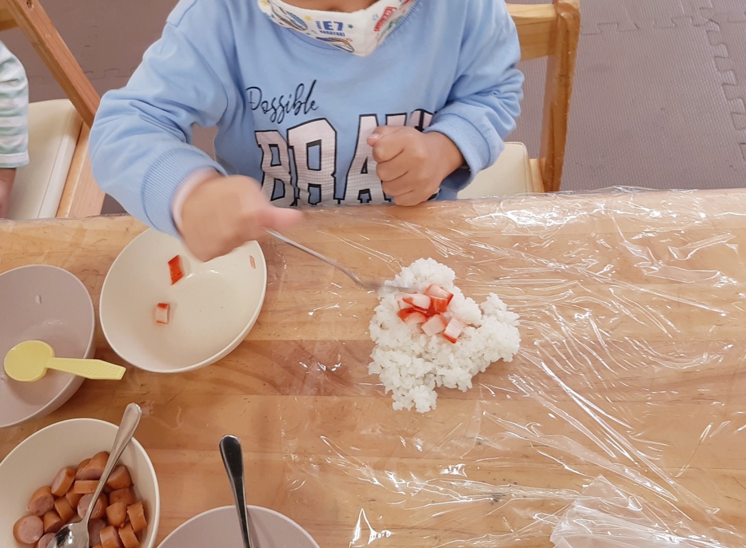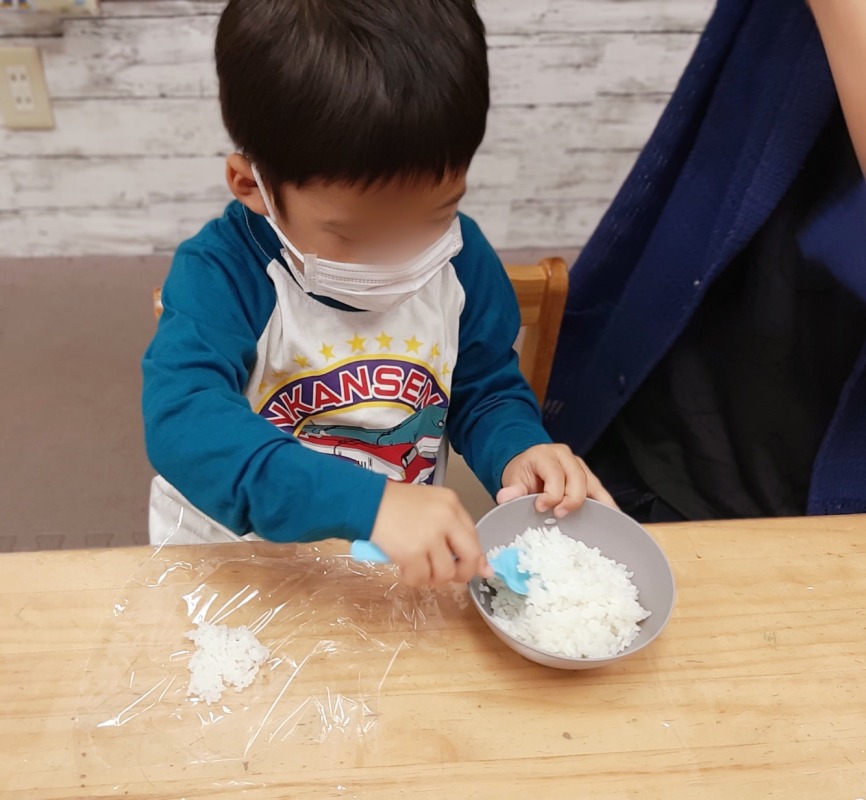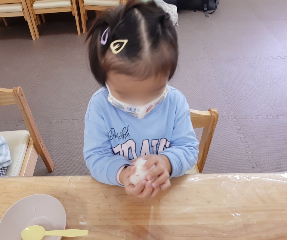 2024.11.8 きのね おにぎり作ってピクニック 日々のこと おにぎり作ってピクニック。どんなおにぎりができるかな?好きな具を入れて、ラップを使ってぎゅっと握ったら、自分だけのおにぎりの完成です!公園へ出かけて、遊具でたくさんあそんだ後は、お待ちかねのお弁当タイム!自分で作ったおにぎにの味は、やっぱり格別でした!お弁当の後は、シャボン玉したりボールあそびしたり、キノコ探しをしたり。友だちやスタッフと一緒に、思い思いに楽しみましたよ。