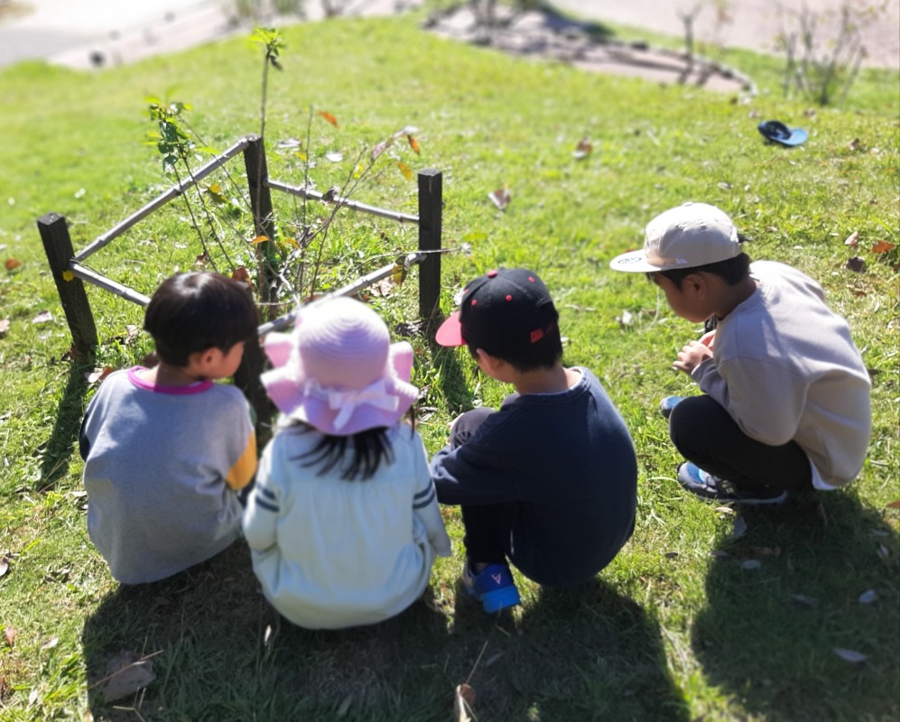 特別な遊具やあそび道具がなくても、そこにある環境の中で、子どもは自分たちであそびを見つけ、発展させていきます。