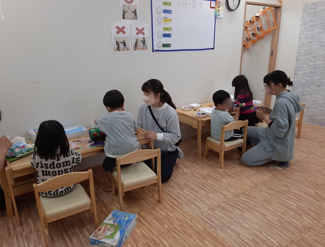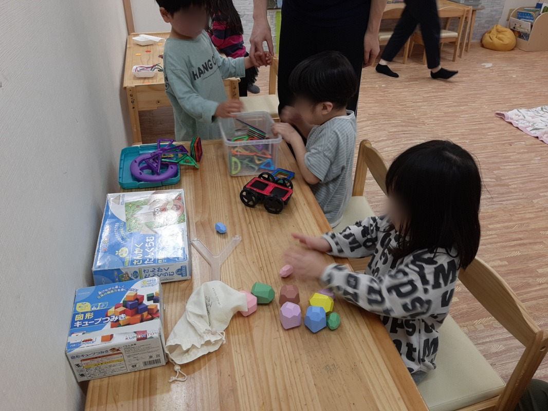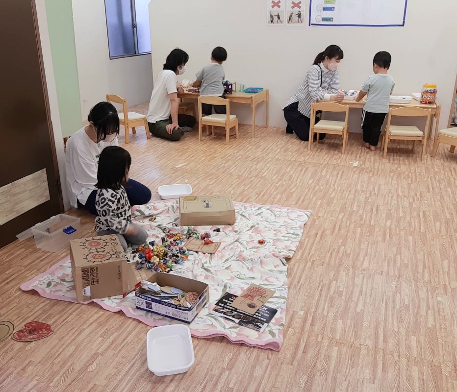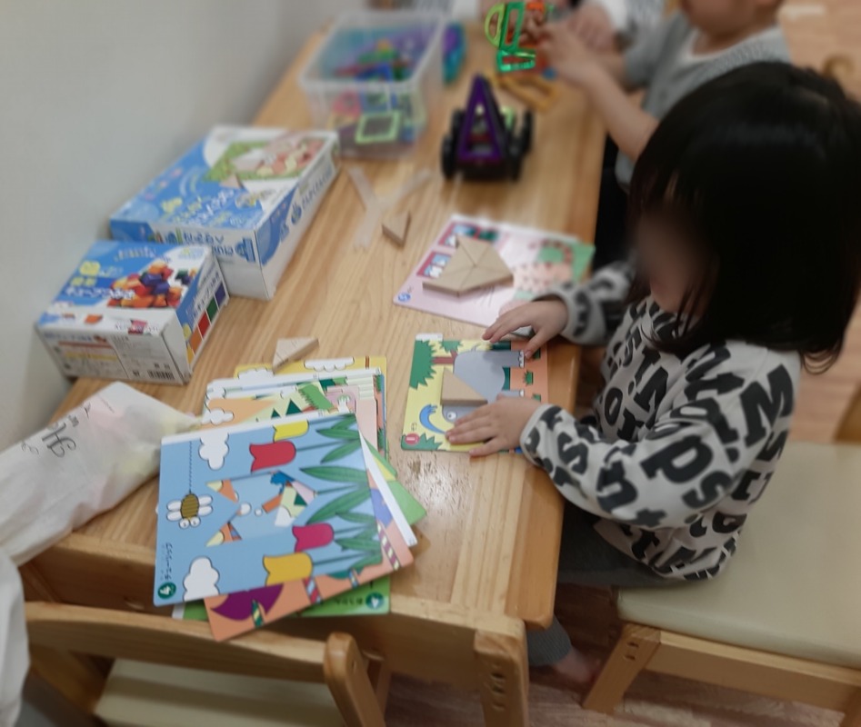 座ってひとつの事に集中するのが難しい子も、とても落ち着いて目の前のあそびに取り組むことができていました。
