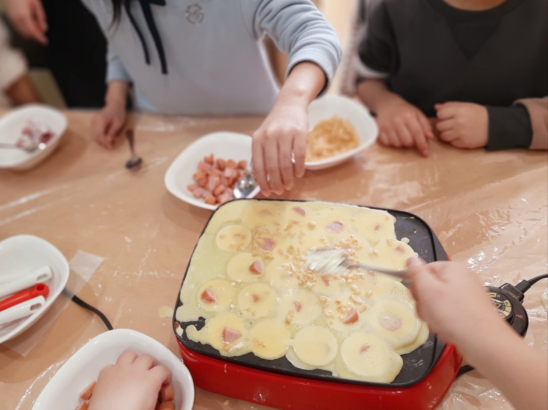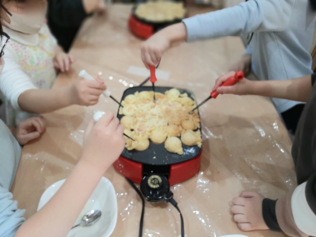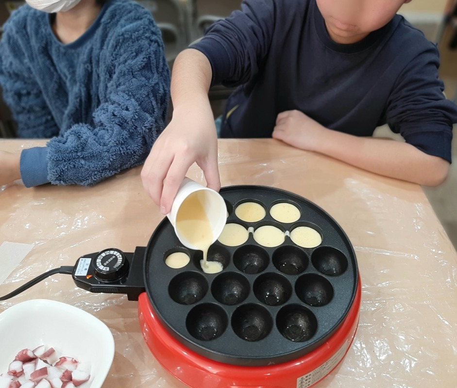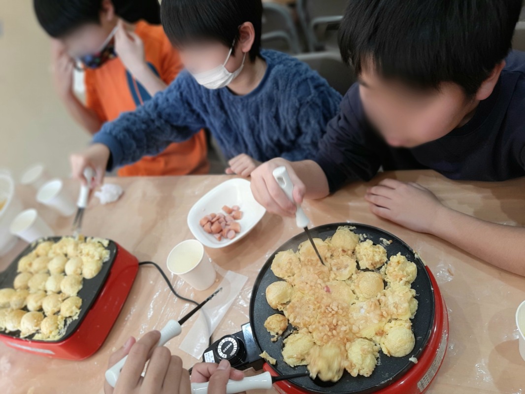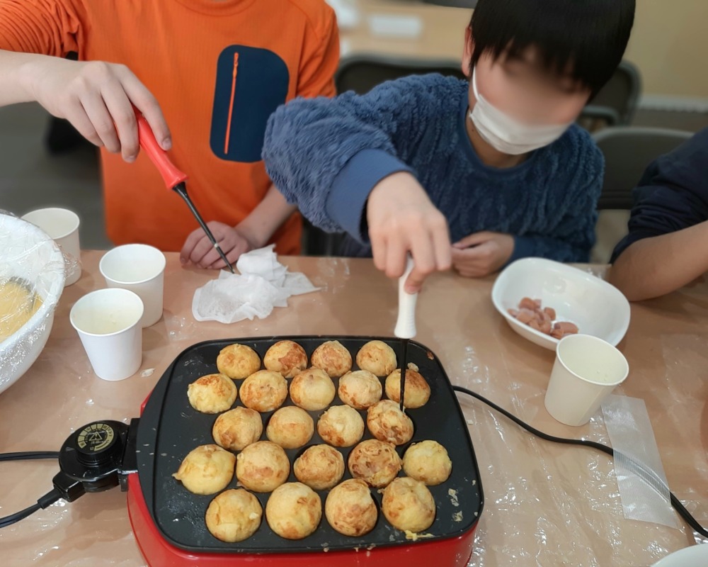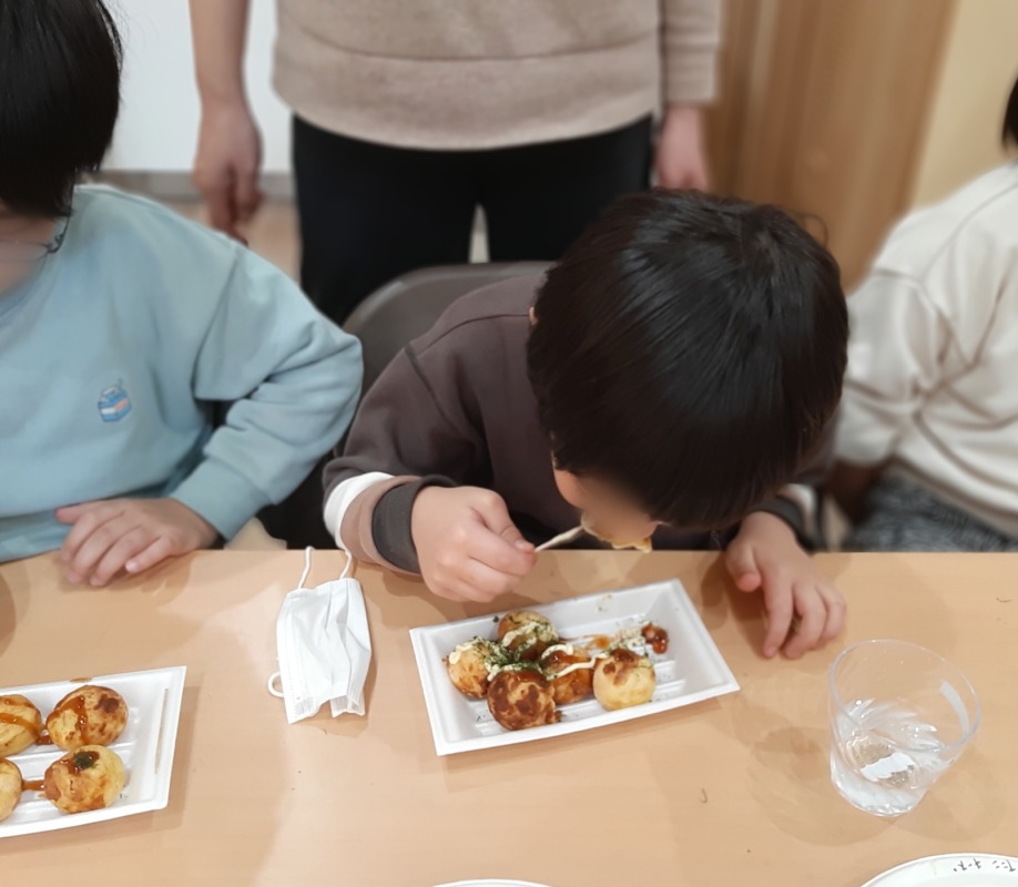 みんなで協力して、楽しく焼いて、とっても美味しいタコ焼きができあがりましたよ。