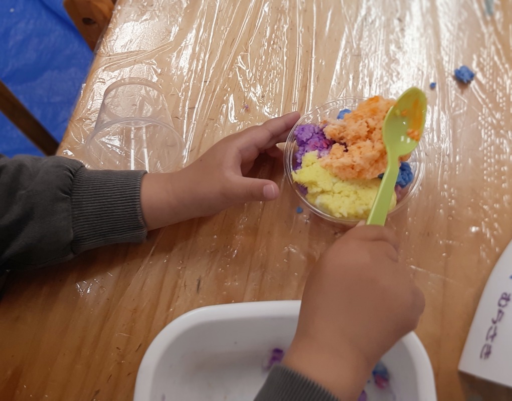 楽しい感覚あそびを通して、「識別系」という脳の働きを育てていくことで、触覚防衛反応を軽減していきます。