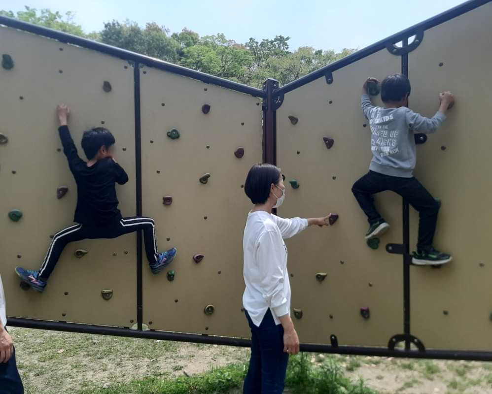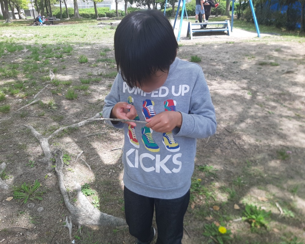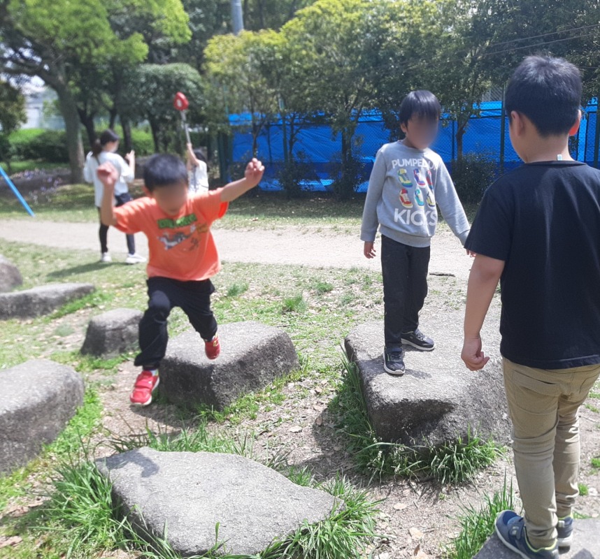 遊具であそぶたけでなく、自然の中でいろいろなあそびを考え出します。