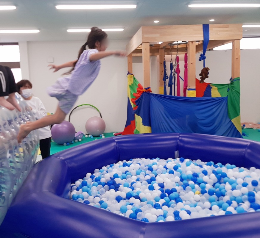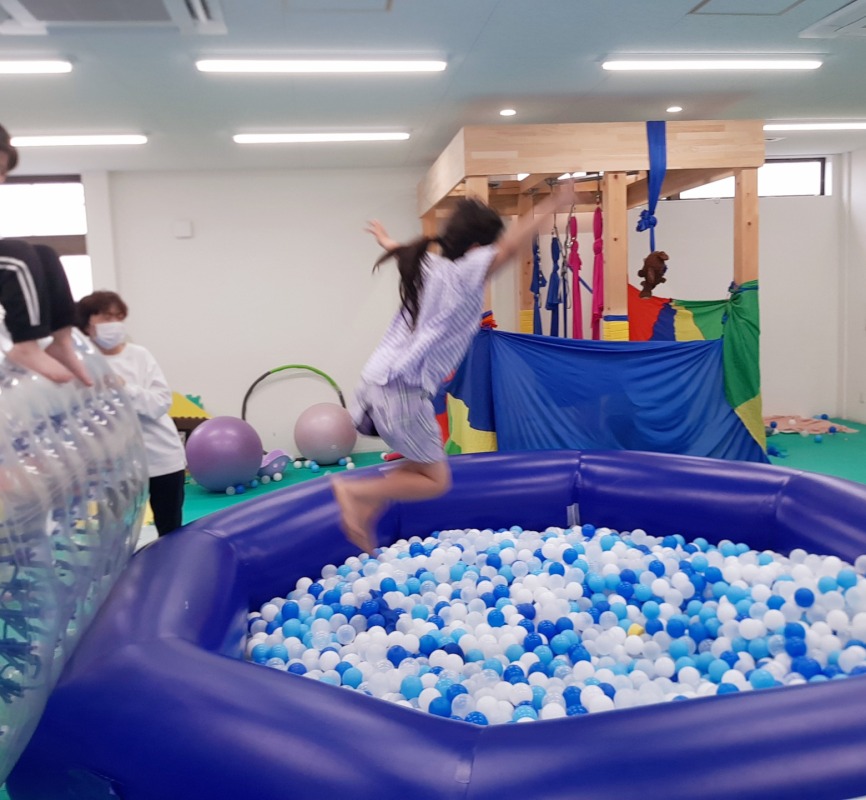 2025.5.16 いろいろジャンプ 日々のこと ボールプールに向かってジャンプ!!マットに向かってジャンプ!!ジャンプが大好きな子どもたち。全身を使った大きな運動で、固有覚や前庭覚といった基礎感覚にアブローチしながら、ボディイメージを育てていきます。もちろん、ストレス発散にも◎たくさんジャンプした後は、とてもスッキリした顔をしてますよ。
