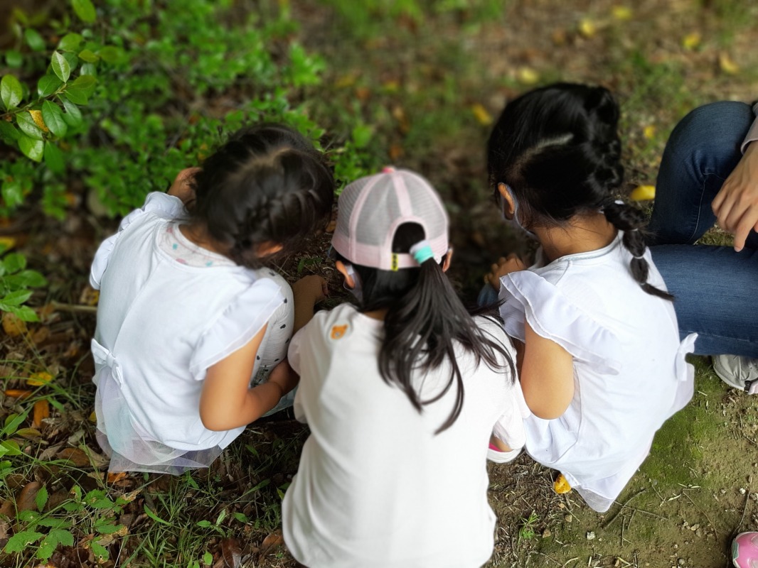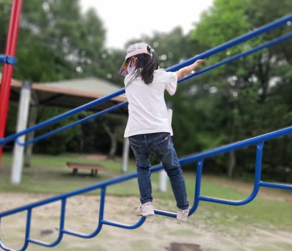 2021.5.22 小幡緑地 日々のこと 今週は小幡緑地の本園へ行きました。珍しい遊具に興味深々な子どもたち。ちょっと難しそう…って思ったけど、最後までやりきりました。最初は少し難しかったけど、すぐにコツをつかんで、上手に膝を曲げて揺らしていました。そしてここにも…ダンゴムシさんがいました!遊具も自然も大好きな、きのねの子どもたちです。
