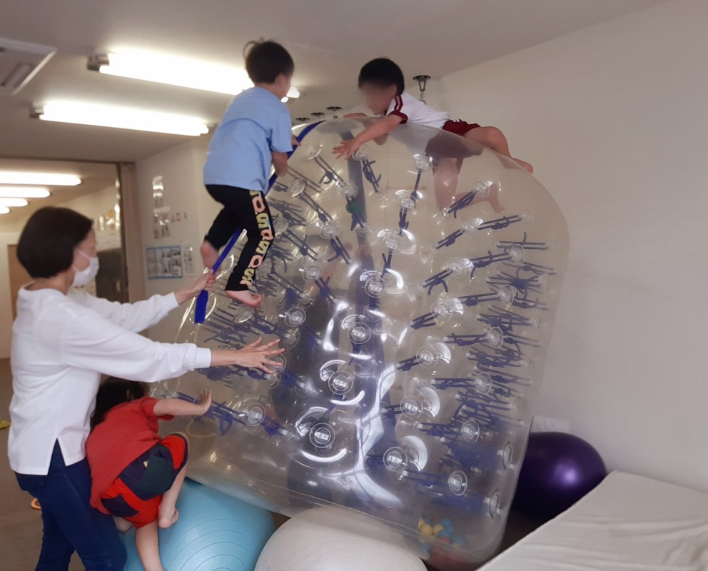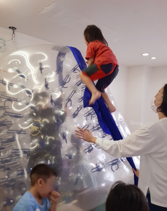 2025.7.31 綱のぼり 日々のこと サイバーホイールを使った綱登り。こんな高いところも軽々と登っていく子どもたち。楽しくあそぶ中で、ボディイメージをはじめ、発達に必要な様々な力を付けていきます。室内でも全身を使ったいろいろなあそびができるよう、工夫して環境を設定しています。