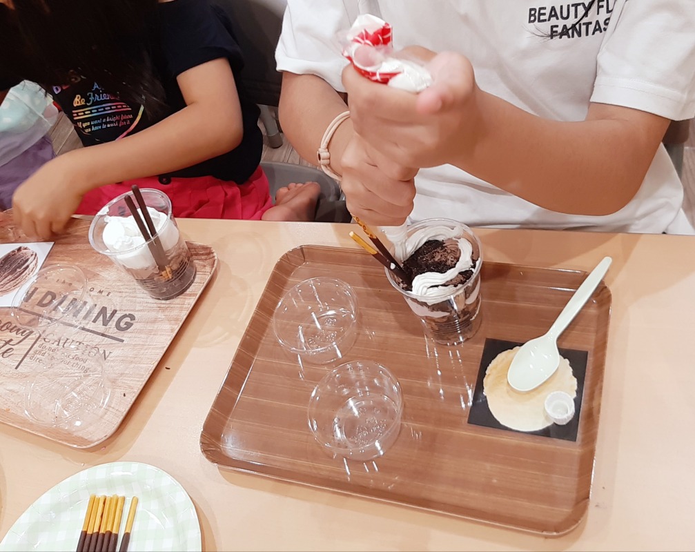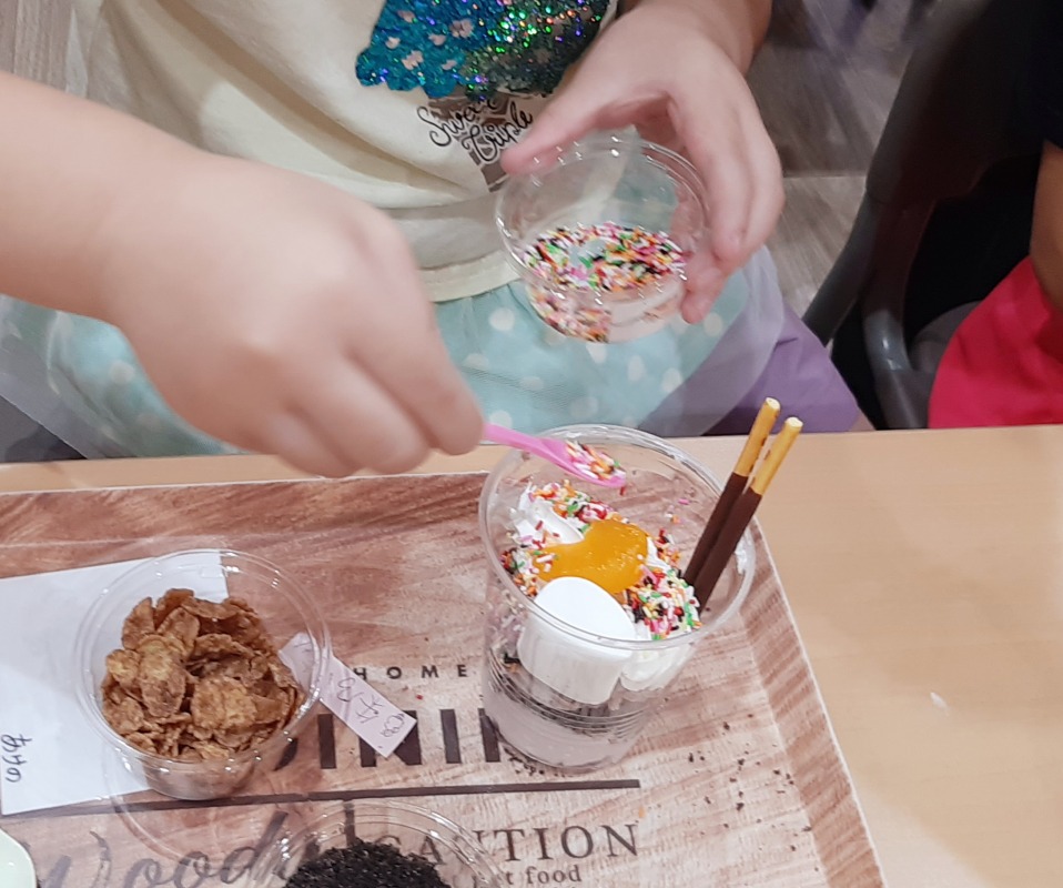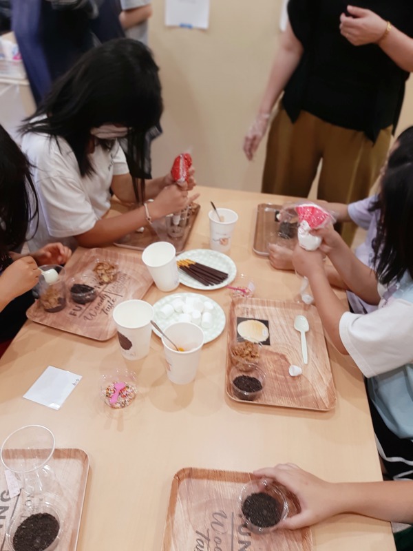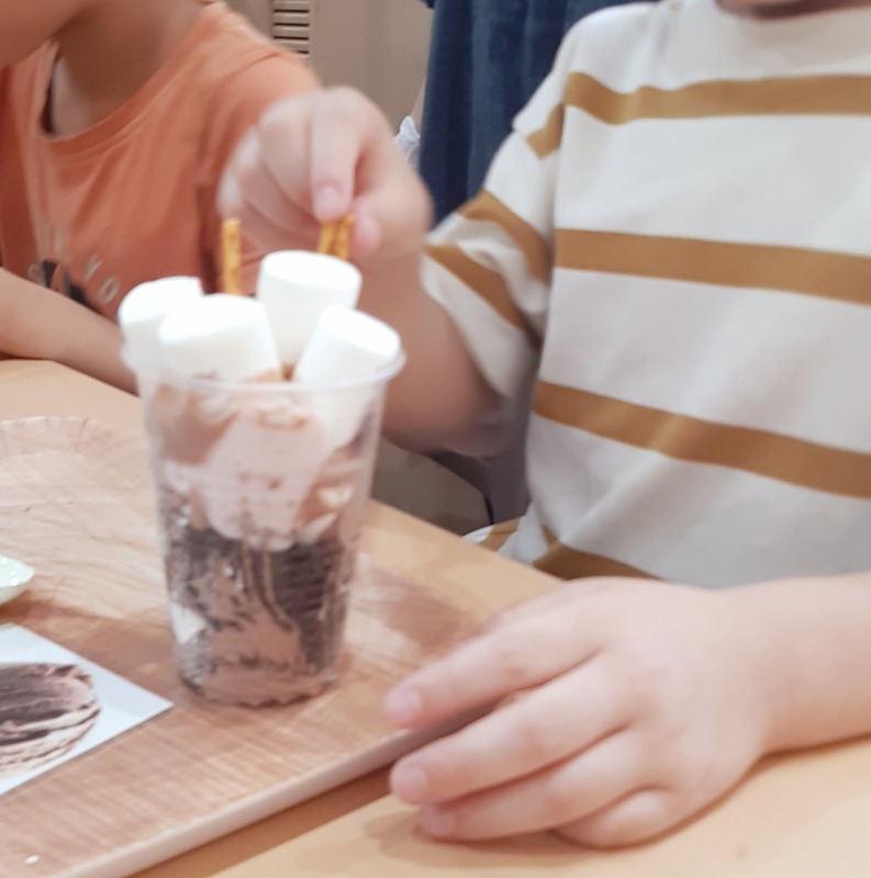 2025.7.26 ironoha パフェづくり 日々のこと ironohaで初めてのパフェづくり。気合い十分な子どもたちです。好きな具材を入れて、自分だけのオリジナルパフェを作りましょう。素敵な素敵な、オリジナルパフェのできあがりです。