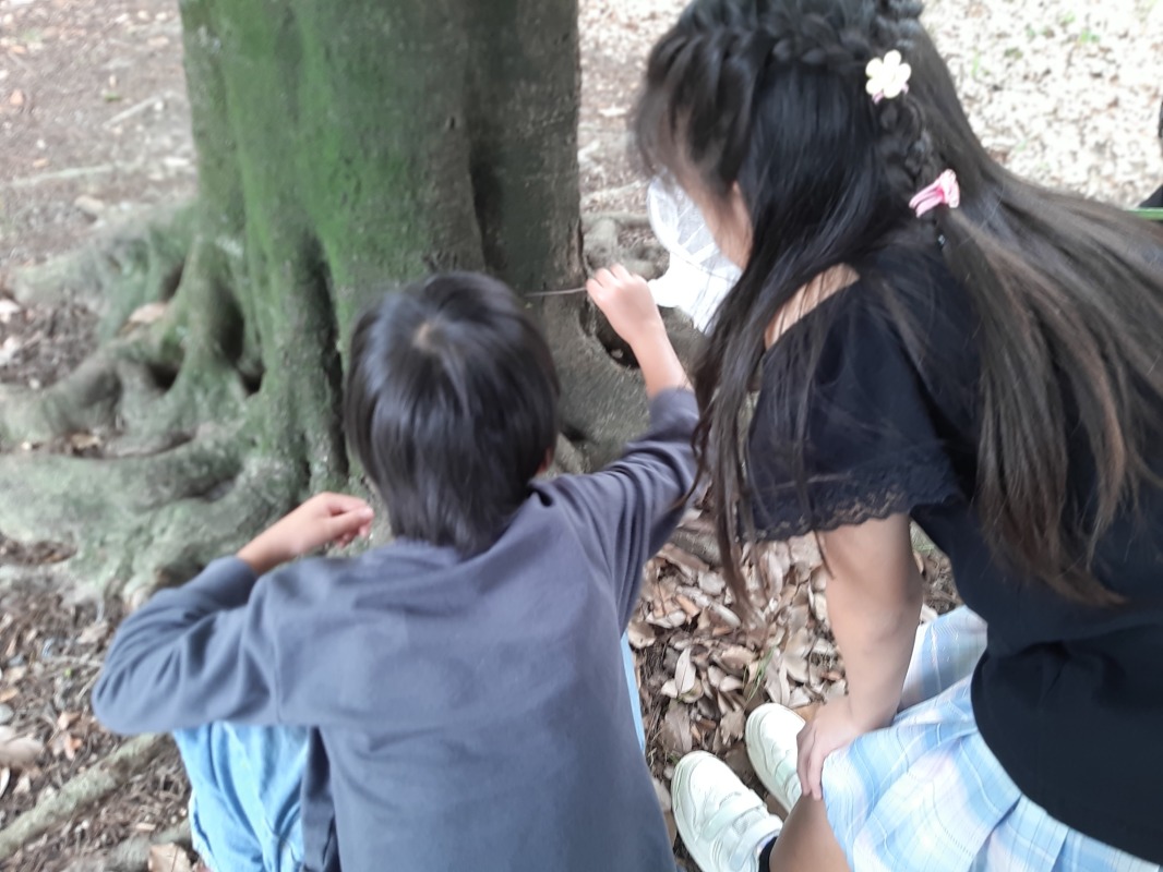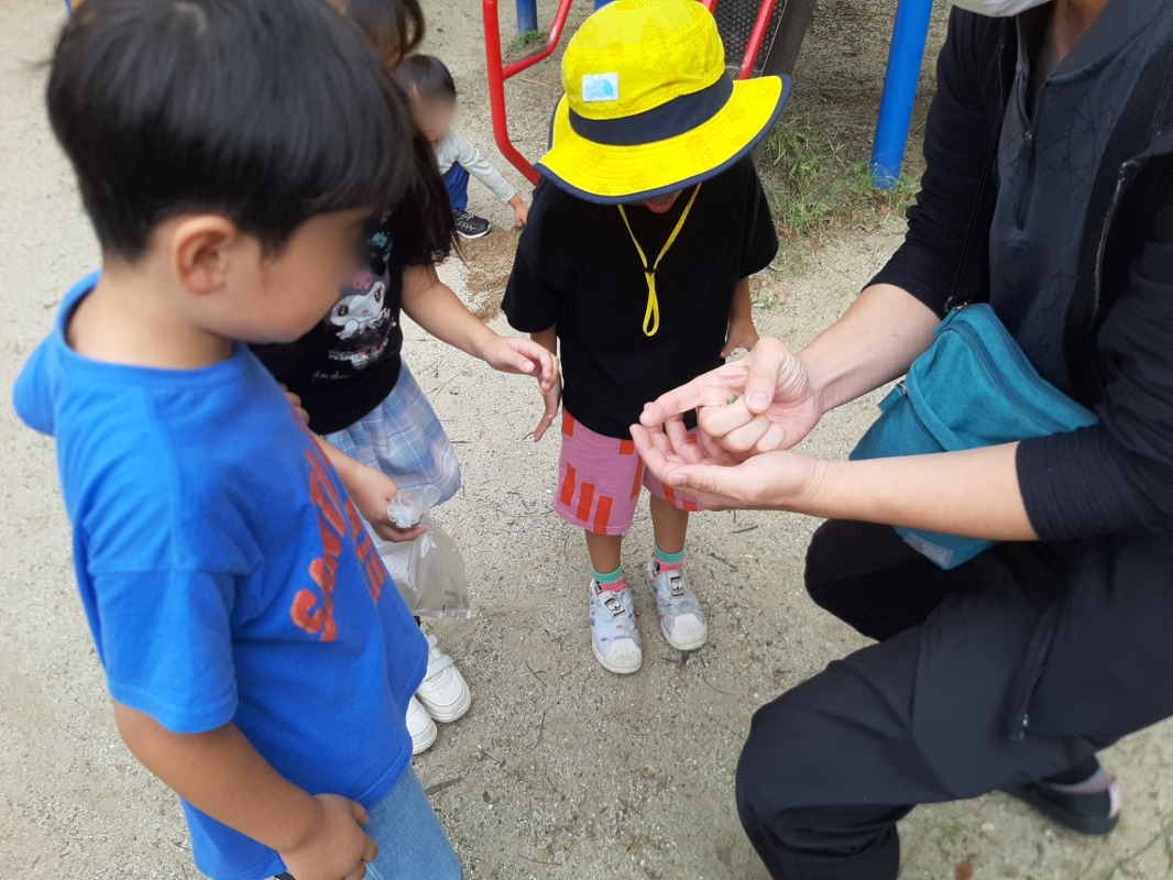 捕まえた虫、触れたよ!