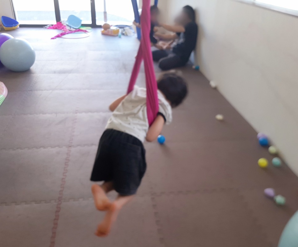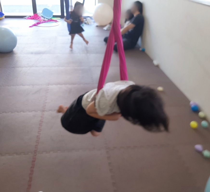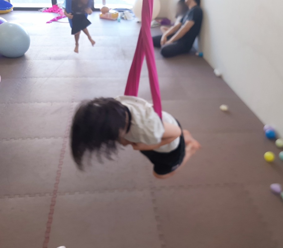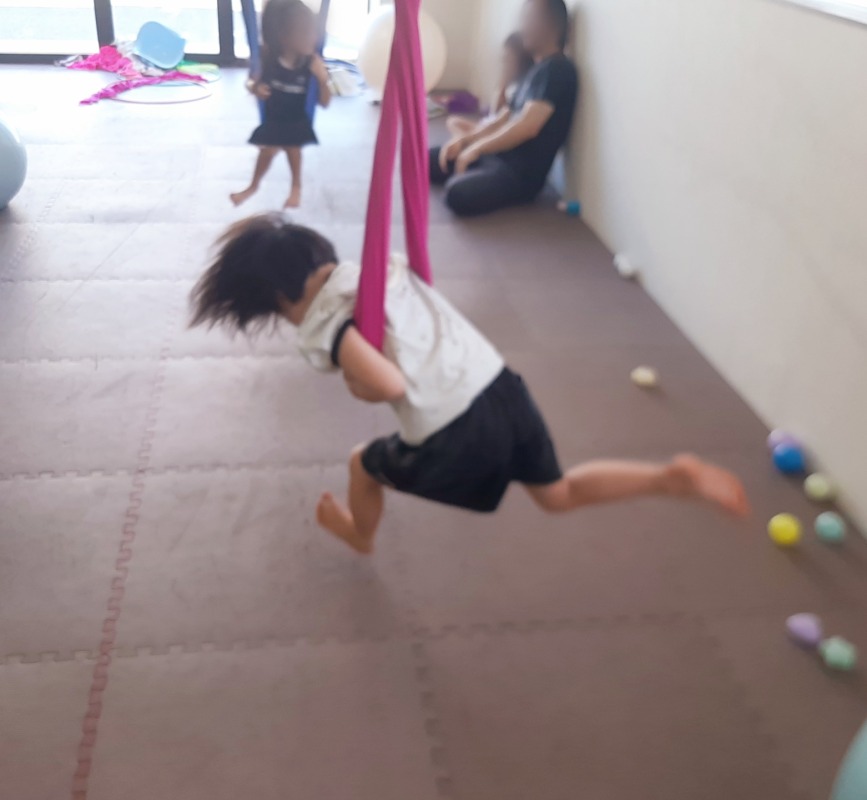 あそびの中で回転刺激をたくさん加えることにより、感覚情報が脳に伝わりやすくなり、視覚認知機能の土台となる、「前庭覚」の働きを促していきます。