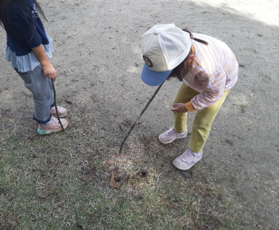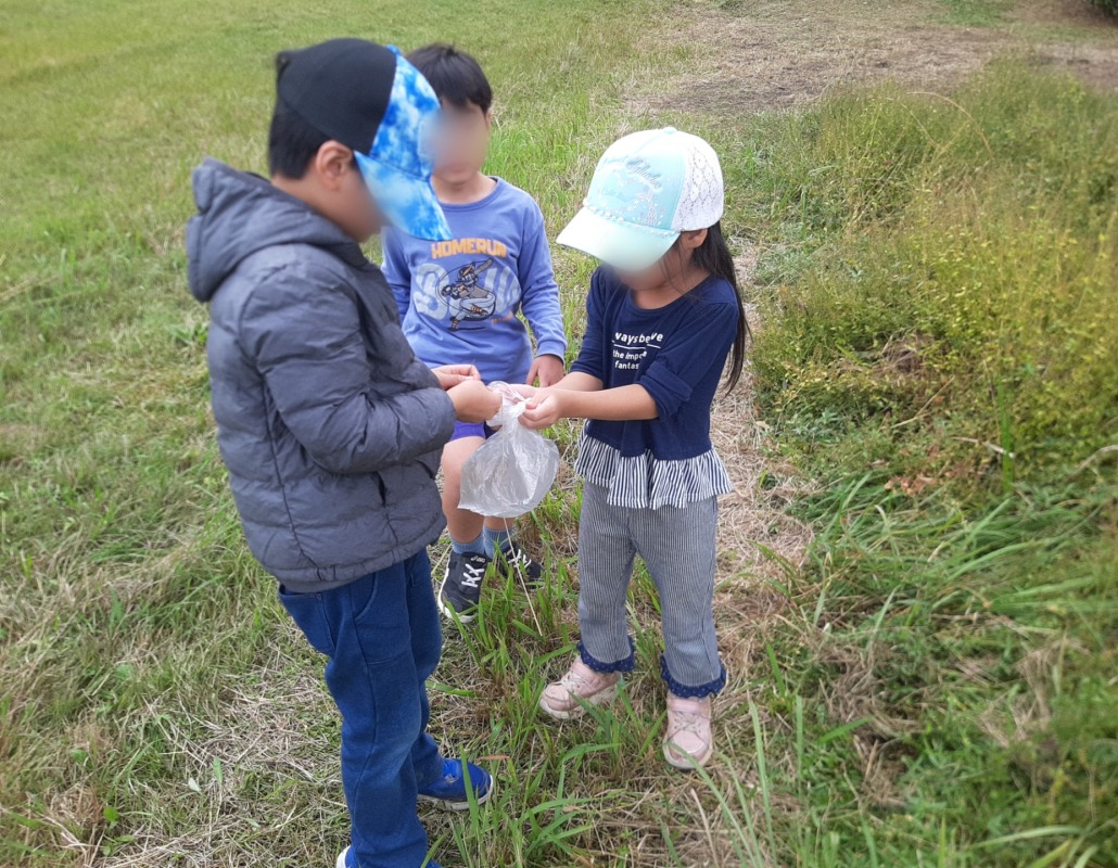 自然の中で、様々な物に出合い、ドキドキワクワクの子どもたち。