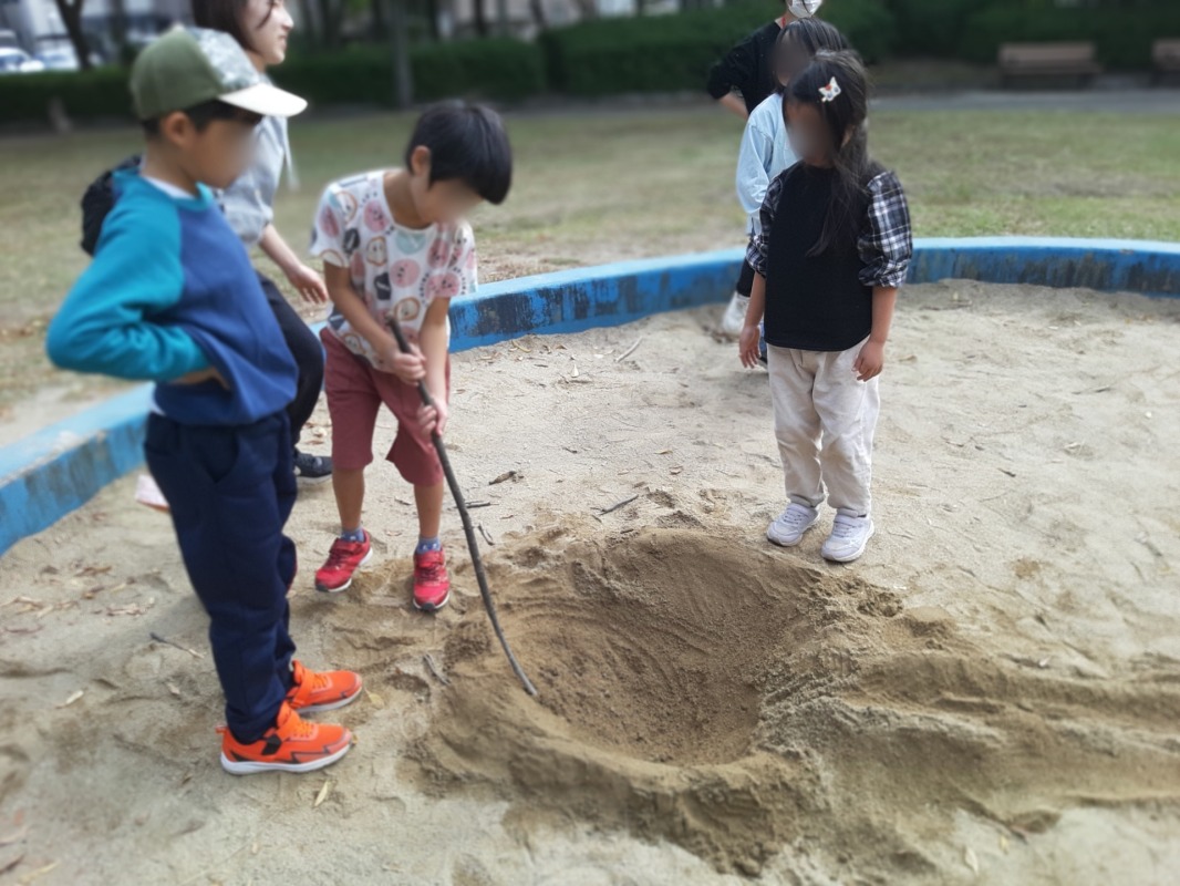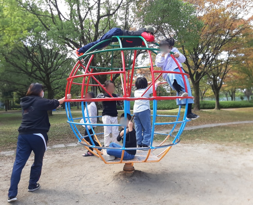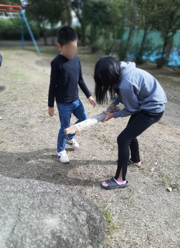 2週間ほど前に、きのねの小さい子たちが出かけたのと同じ公園に行ったのですが、小学生のironohaの子どもたちはまた違ったあそび方をしていました。