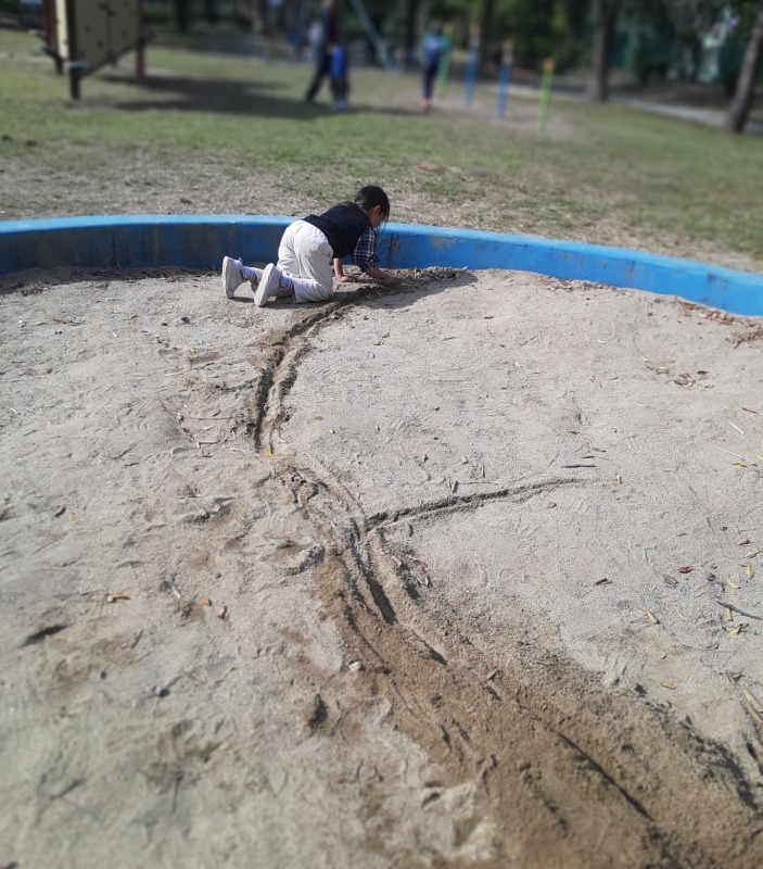 砂場セットがなくても、想像力を膨らませてあそびが広がっていきます。