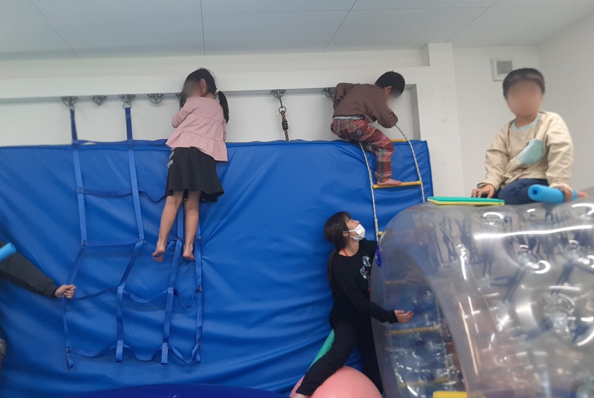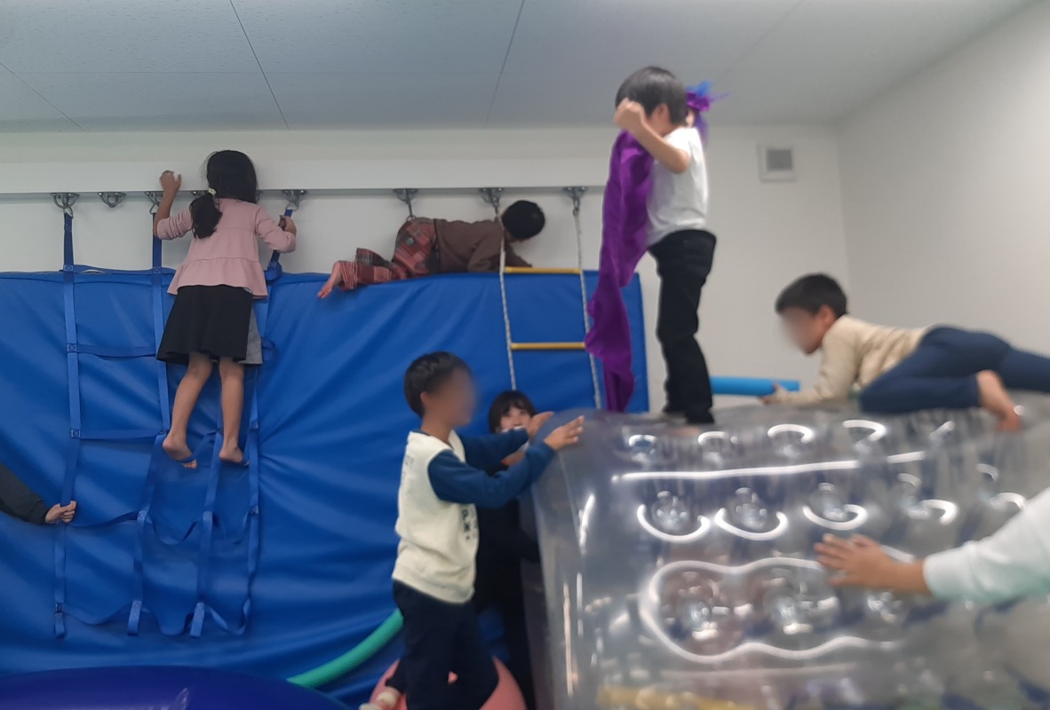 2025.11.27 ironohaの複合遊具 日々のこと ironohaでは、マットやサイバーホイール、クライミングネットなど様々な室内遊具を組み合わせて、大型複合遊具ができあがります!高いところを平気で登っていく子どもたち!室内でも、安全に思いっきり身体を動かせてあそべるよう、スタッフも全力でがんばっています!