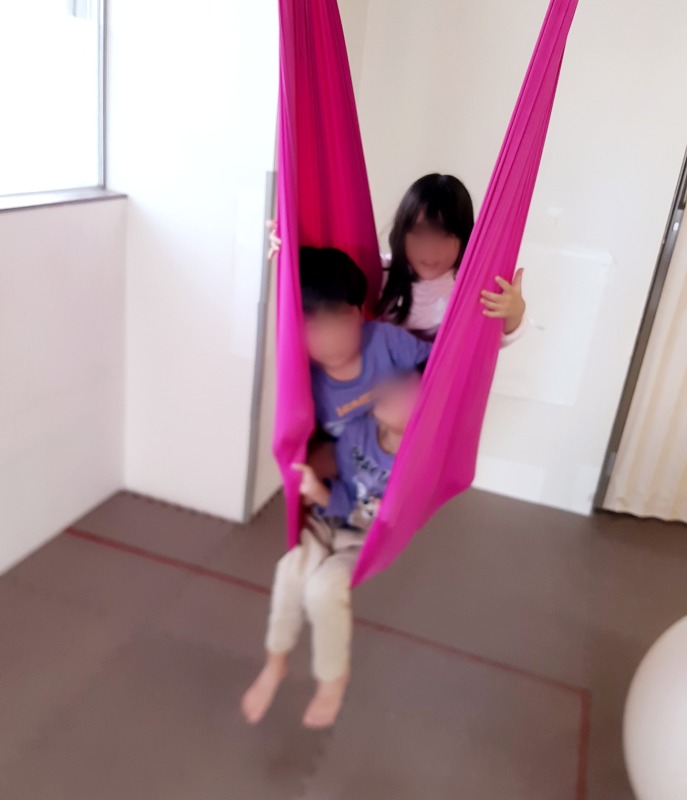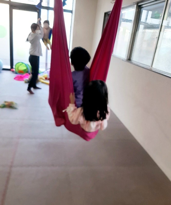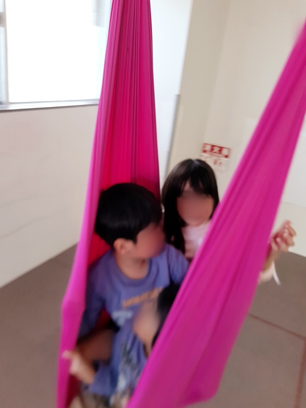 友だち二人か一緒にハンモックに乗ってるのを見て、「私もハンモック乗りたい」と言う女の子。