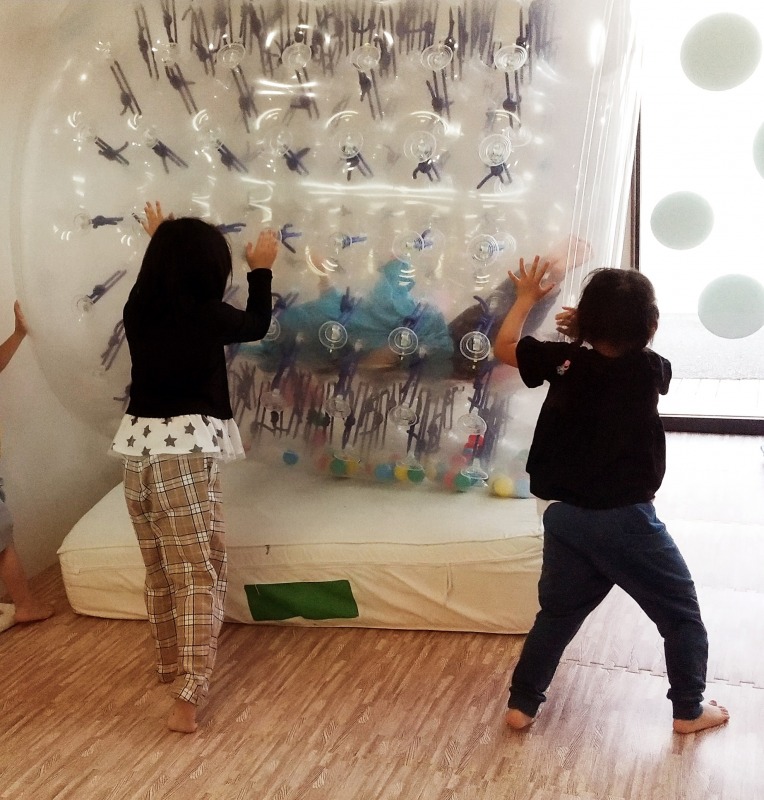 中に入ってる子たちは…床に落ちた衝撃を楽しんでいました!