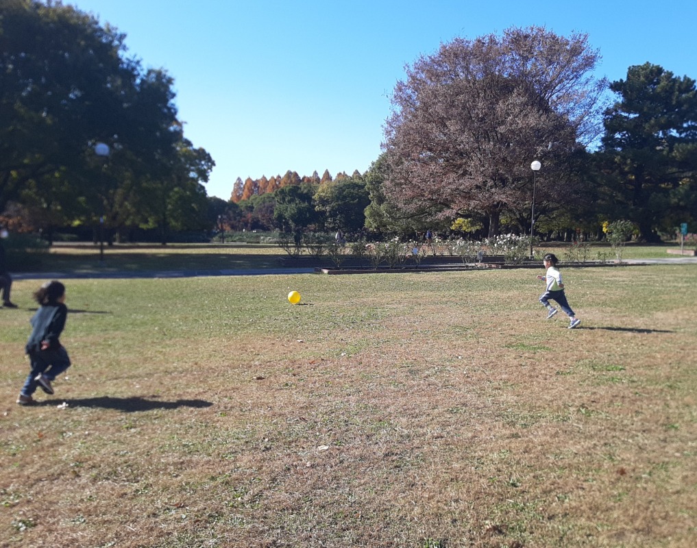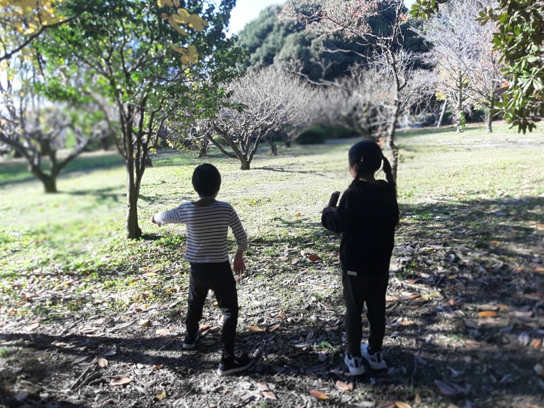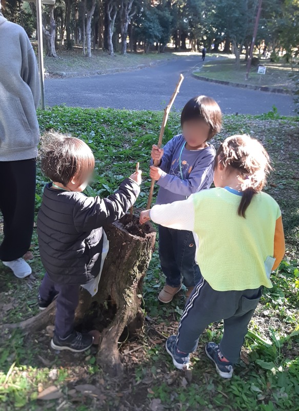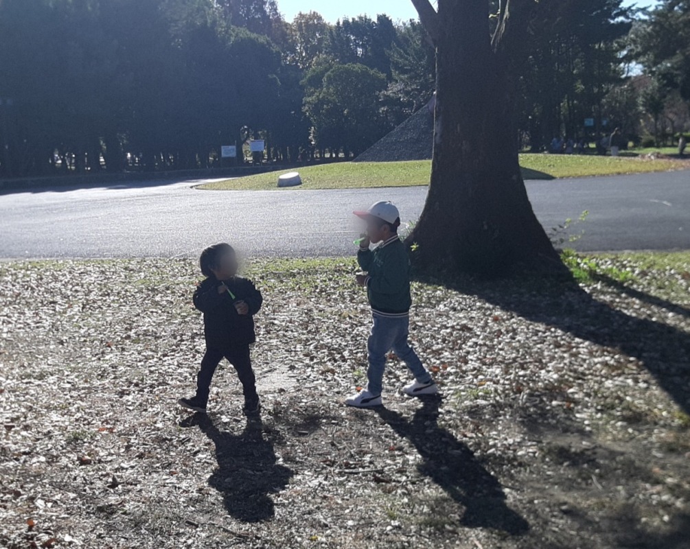 青空の下、友だちと一緒にたくさん身体を動かして、たくさんの「不思議」を見つけてあそびをどんどん発展させていった子どもたち。