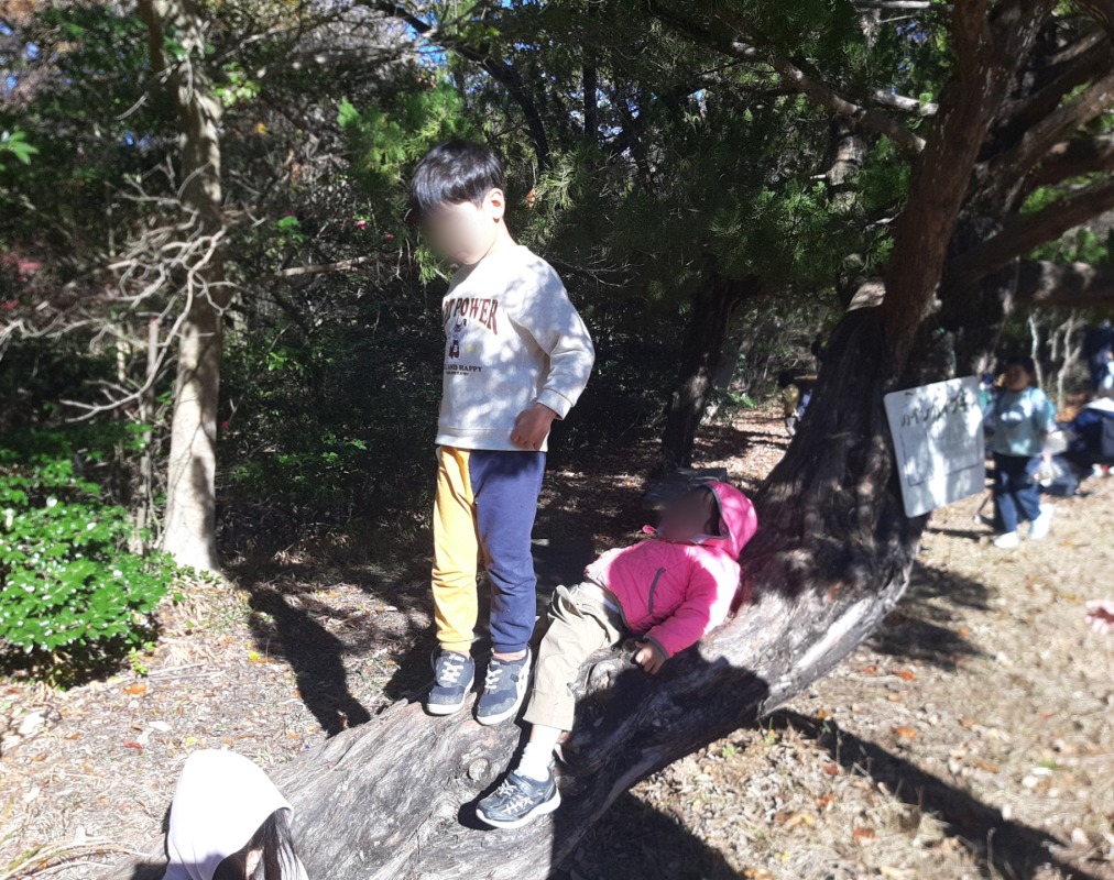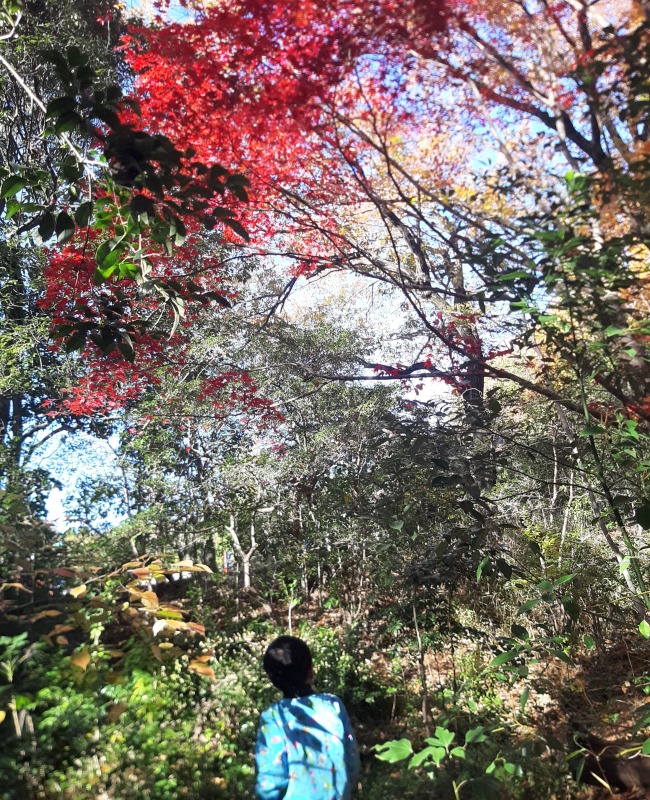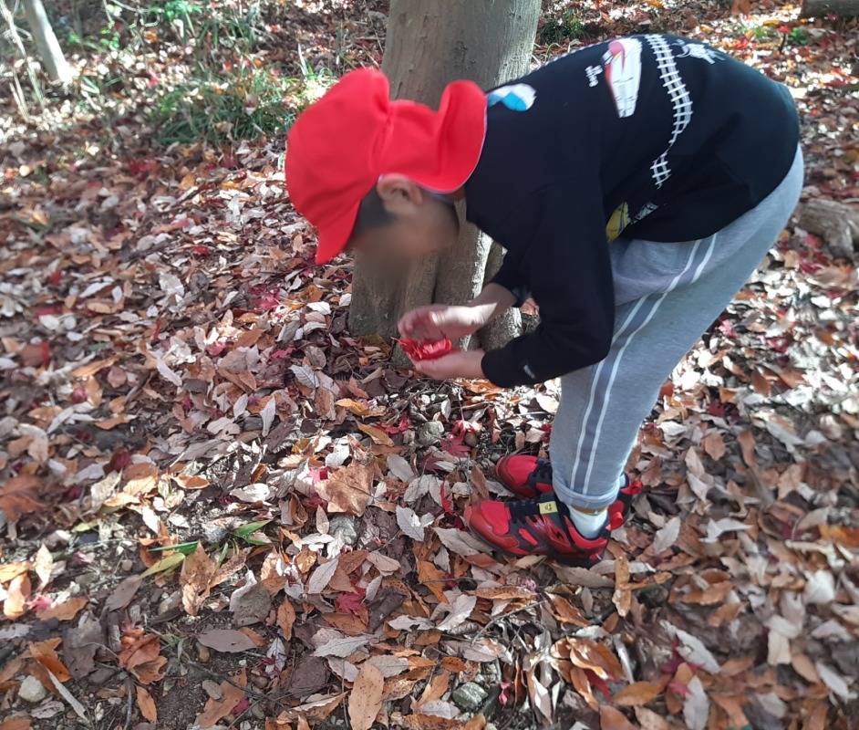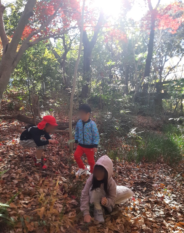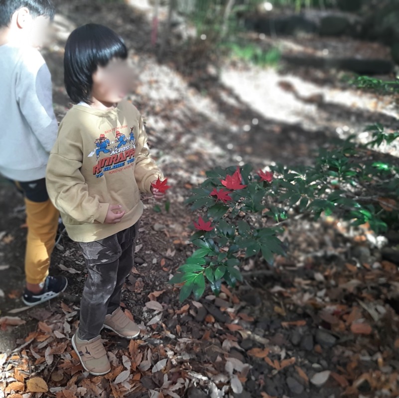 お弁当の後の自由あそびの時間、モミジがキレイな場所を発見!
