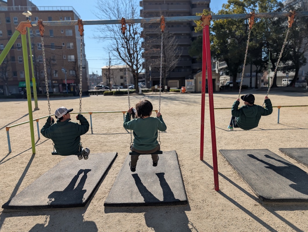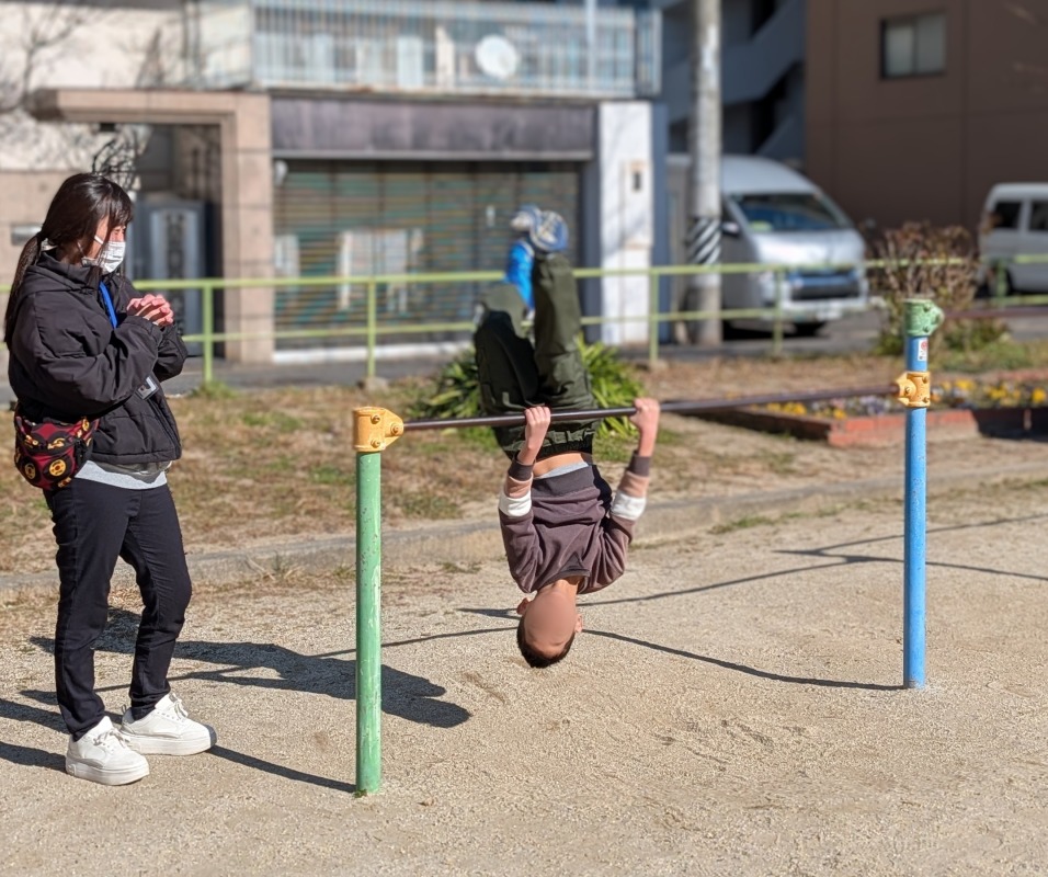 2026.1.12 ironoha 初詣 日々のこと ironohaでは、今年も電車で初詣に出かけました。おみくじは何が出たのかな?初詣の後は近くの公園へ!鳩さん、こんにちは!逆上がりに挑戦!靴飛ばし、懐かしい!いっぱい飛んだよ!寒さに負けず、青空の下でたくさん遊び、心と身体を開放したきのねの子どもたちです。
