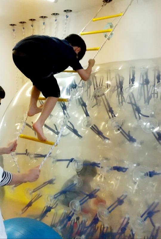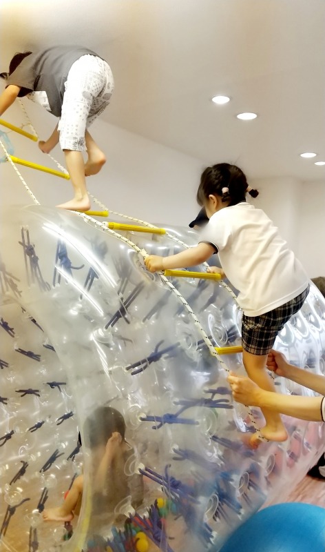 2021.6.2 はしごを使ってのぼろう 日々のこと サイバーホイールに登るあそびは大人気ですが、こんな登り方をしていました。子どもの発想ってホントにすごい!いつも感心させられっぱなしです。腕と足の裏をしっかり使って登っていきます。これが発達にとって、とっても大事。どこまで登っていくのかな?