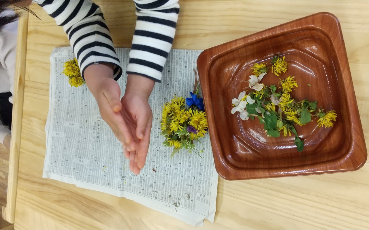 2021.4.2 タンポポ 日々のこと 今日も公園に行きました。公園で、タンポポをたくさん摘みましたよ。事業所に戻ってから、かわいいブーケを作りました!きのねでは、身体をたくさん動かしてあそぶ時間と、工作などをして静かにあそぶ時間を分けています。静かにあそぶ時間も、こどもの発想を大切にしています。明日はどんな作品ができるかな?