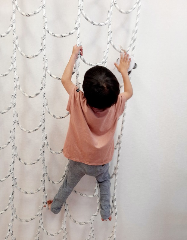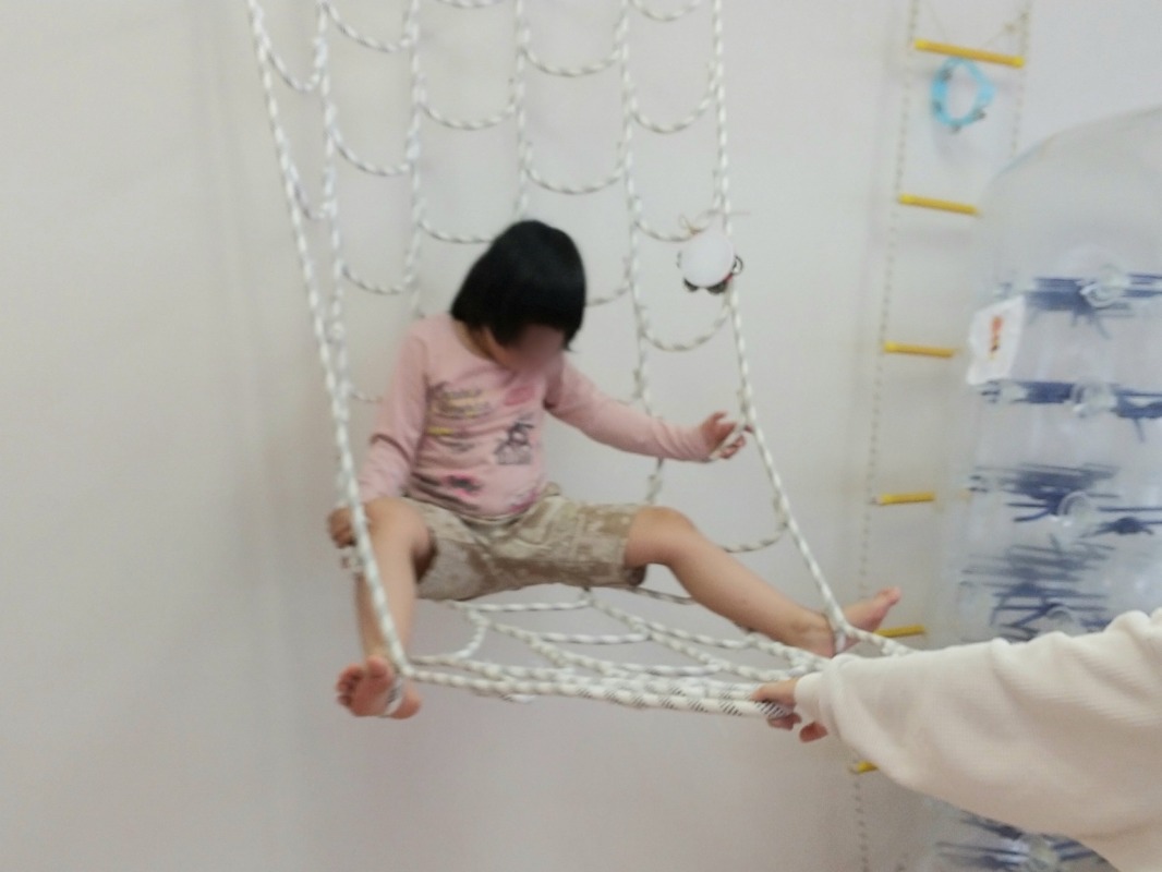 2021.6.17 クライミングネットで揺れよう 日々のこと きのねにあるクライミングネット。基本は登ってあそぶ子が多いですが…最近は、こんな風に乗って揺らしてもらい、ブランコのように楽しむあそびが流行っています。激しく揺らすと、遊園地の乗り物みたいにかなりダイナミックに動きます!落ちないようにしっかりネットを握りしめ、知らず知らずのうちに、身体の使い方を学んでいきます。