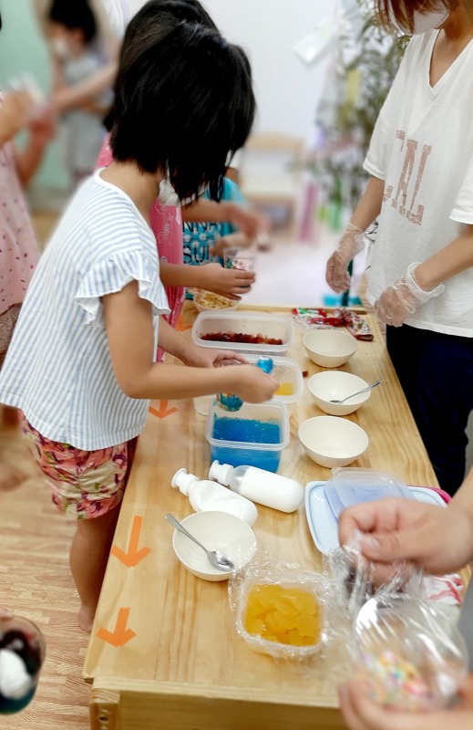 自分で作ったカップの中に好きな具材を入れてパフェを作ります。