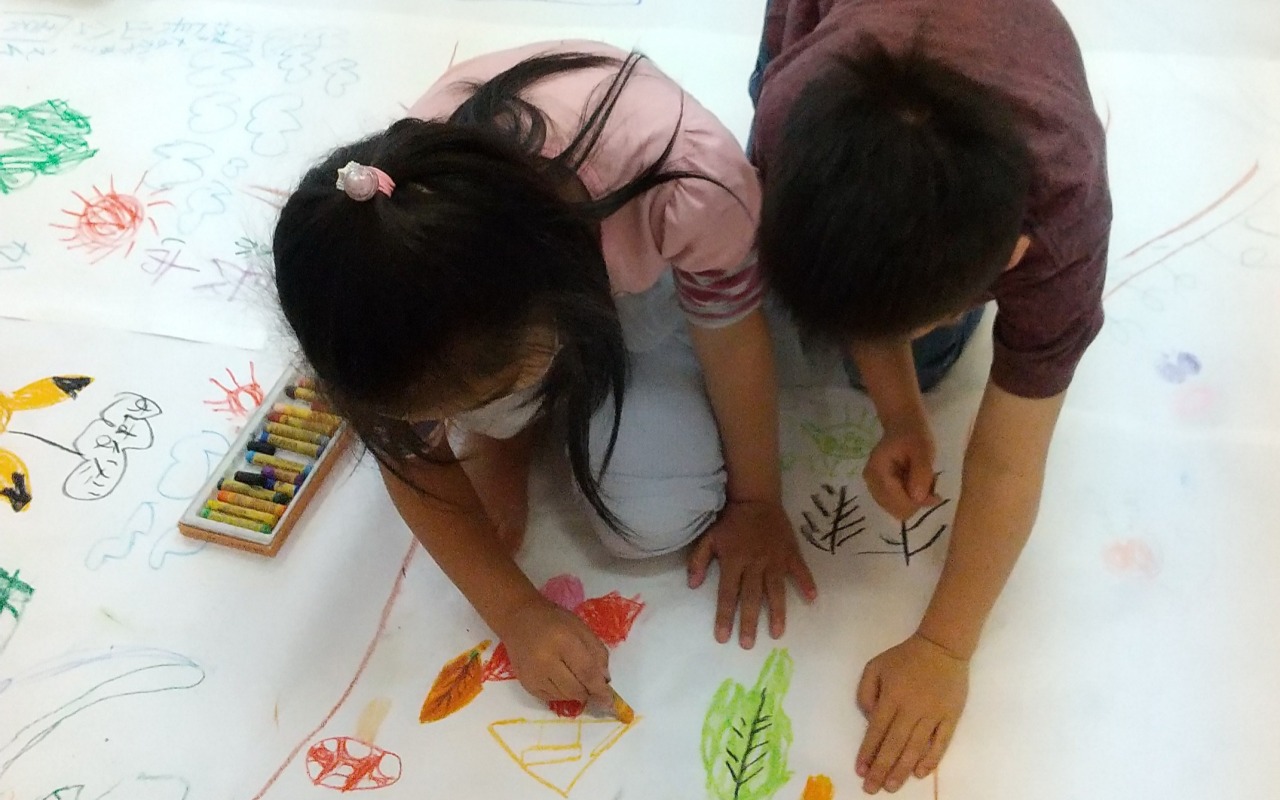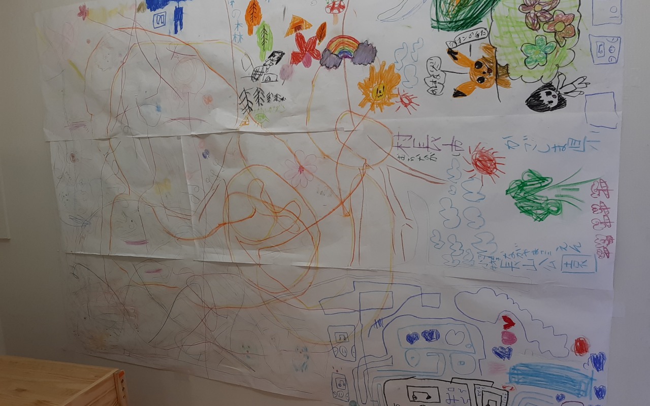みんなで一枚の大きな紙にお絵かきをしました。