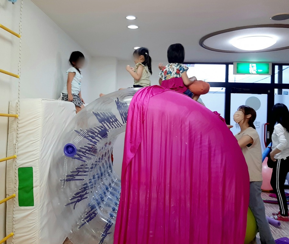 2021.7.13 新しいあそび 日々のこと きのねでまた新しいあそびが生まれました。マットが立ててあったのをキッカケに始まったあそび。やっぱり子どもたちの発想はすごいです。マットに乗っている女の子が先生役みたいです。何の踊りかな?高いところでとっても気持ちよさそう。新しいあそびにワクワクしながら、友だちと「楽しいね!」をたくさん共有しました。