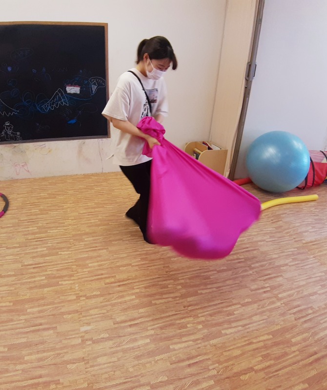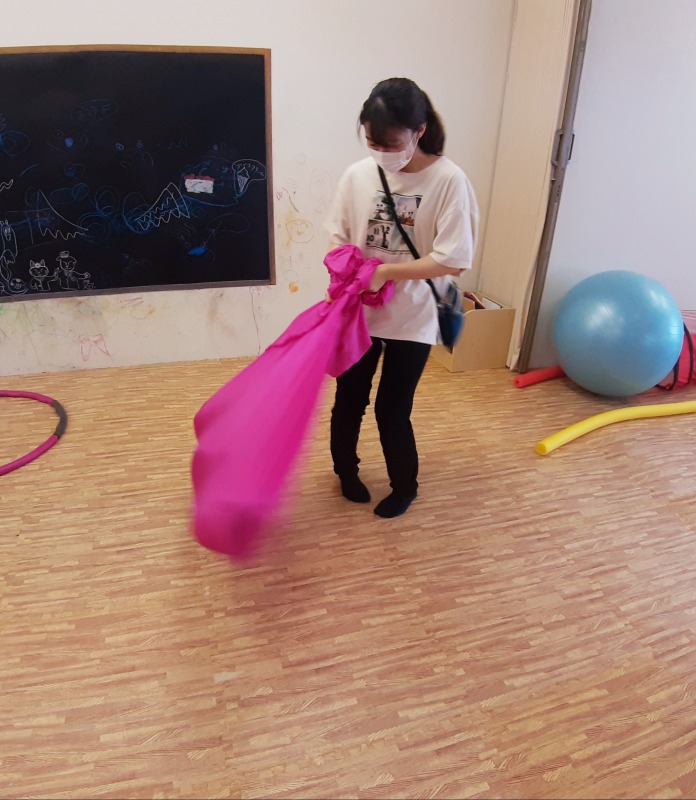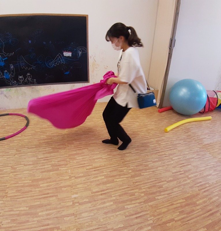 目が回りにくいお子さんが、特にこの回転刺激を求める傾向があるので、きのねではお子さんの様子を観察しながら、満足するまで回転刺激を与えていきます。
