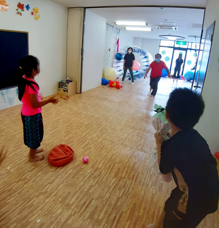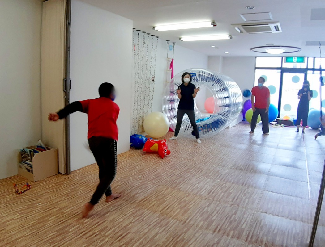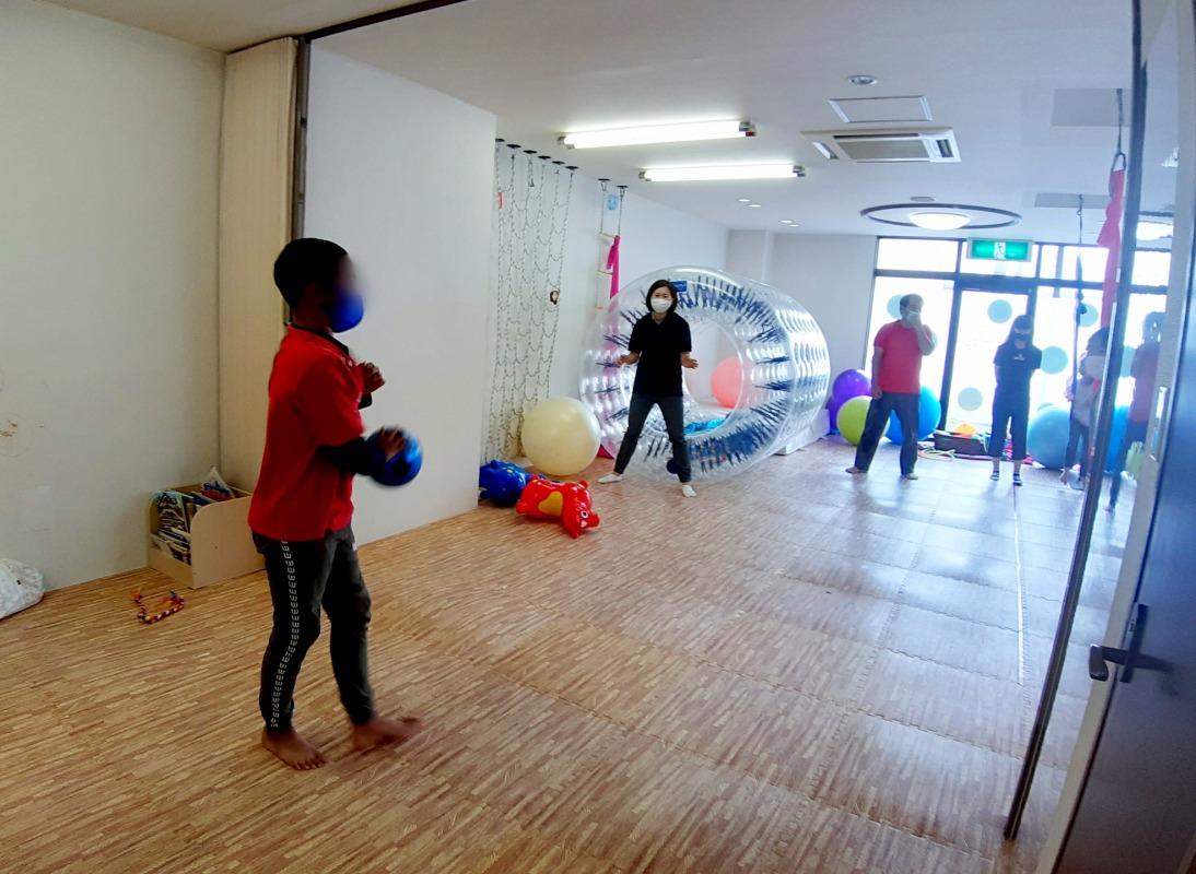 2021.8.17 ドッヂボール 日々のこと 今日は人数も少なく、室内を広く使えたのでドッヂボールで盛り上がりました。スタッフVS子どもたち。真剣勝負です!スタッフも本気になって闘います。狙いを定めて…投げました!すごい威力です。スタッフも手加減せず一緒にあそびを楽しむことで、子どもたちは自分で選択したあそびを、思い切り楽しみ、やりきることができます。