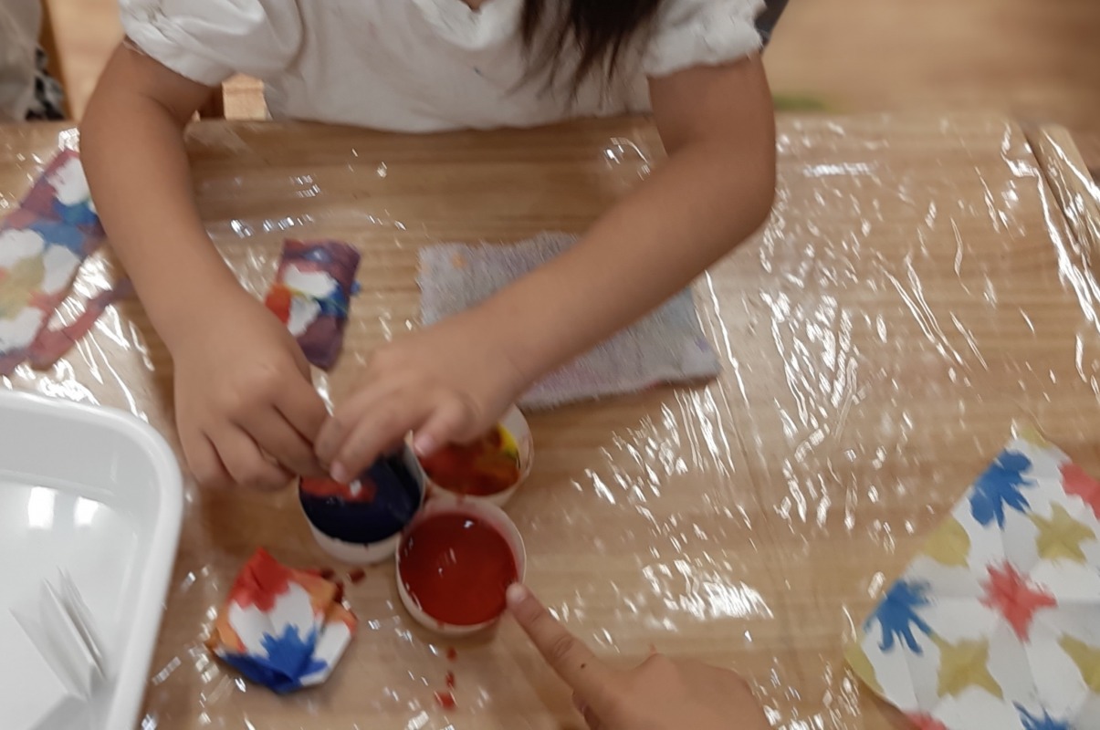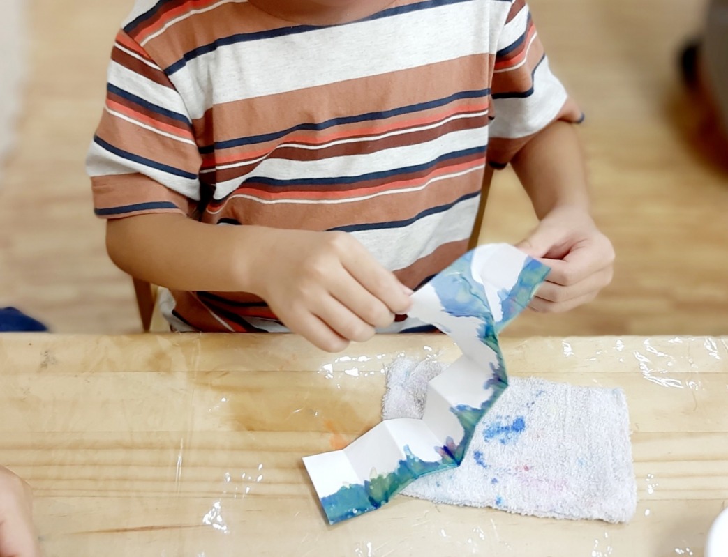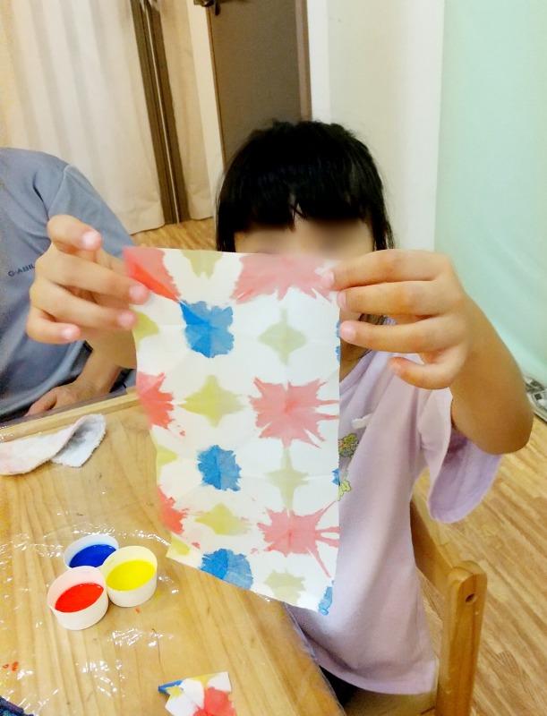 絵の具の浸し方、色の使い方によって、みんなの個性が光る、いろんな模様ができました。