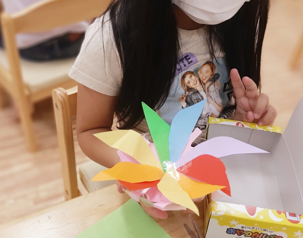 廃材の形や、折り紙の切れ端の形から、「あんなの作ってみよう!」とひらめいた時の顔はとってもキラキラしています。