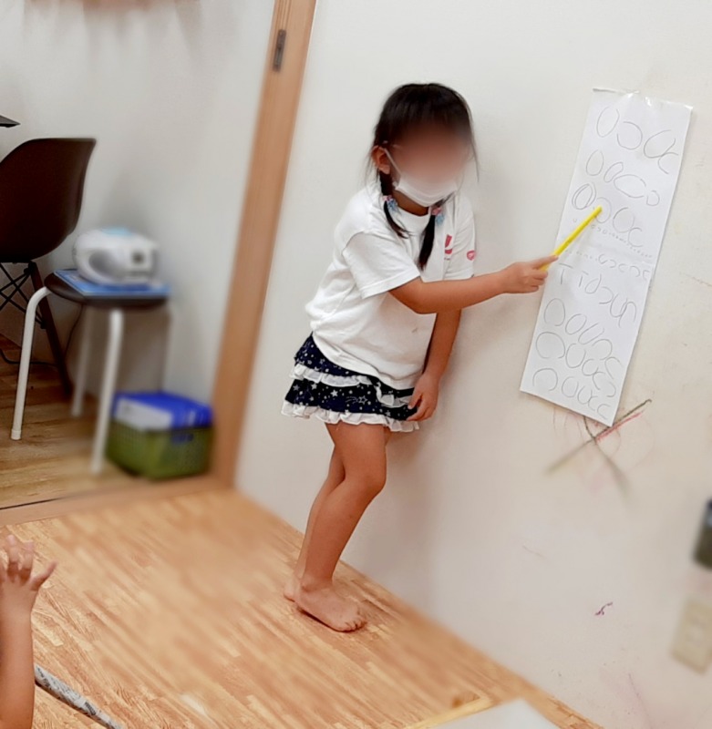 2021.8.27 ごっこあそび 日々のこと 何のあそびをしてるのかな?「これはどっち向いてますか~?」視力検査あそびをしていました!すごい完成度です!どうやってこのあそびに発展したのでしょう?とても微笑ましい光景でした。
