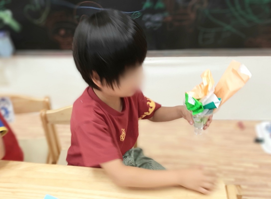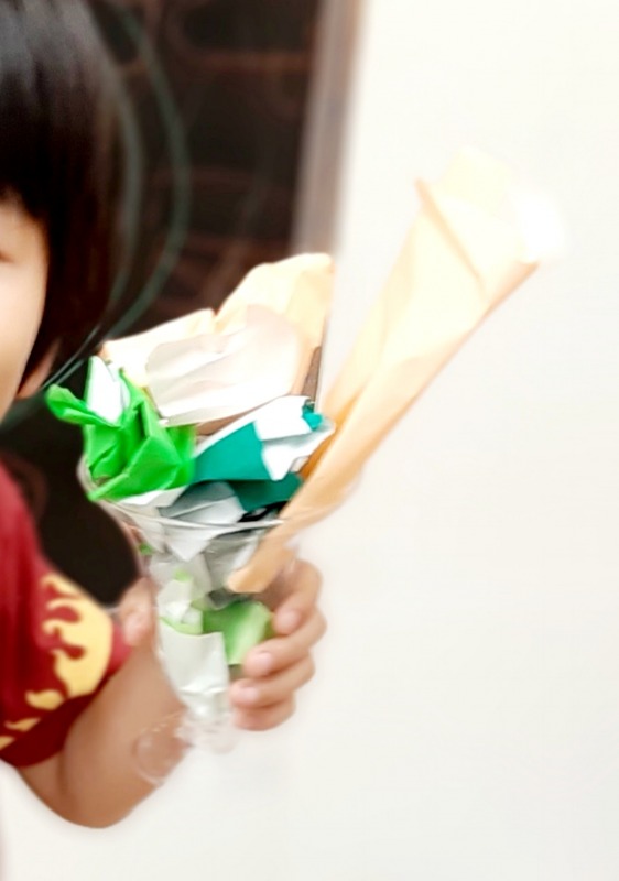 2021.10.14 折り紙パフェ 日々のこと 静かなあそびの時間。折り紙で、素敵なパフェを作りました。細かいところまで、とっても工夫されています。納得するまで取り組むことができ、大満足で終えることができました。