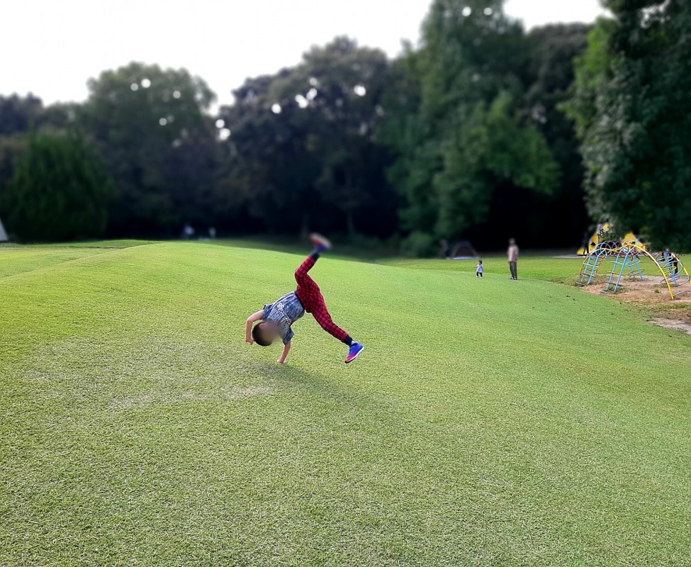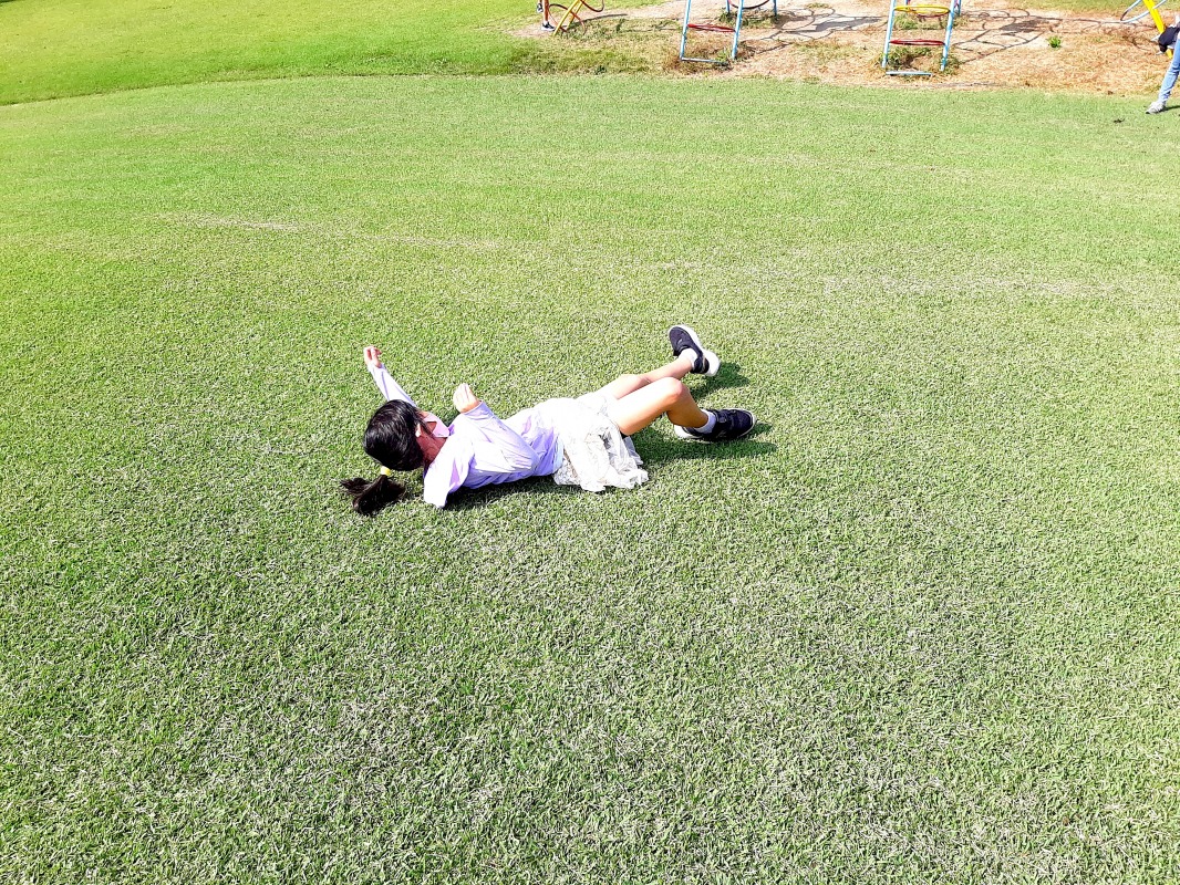 2021.10.17 芝生広場であそぼう 日々のこと 公園の遊具も大好きだけど、やっぱり広い芝生広場も大好きなきのねの子どもたち。転がったり、側転したり、追いかけっこをしたり、調べ物をしたりして、のびのびと楽しみました。