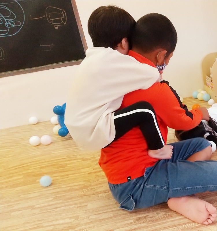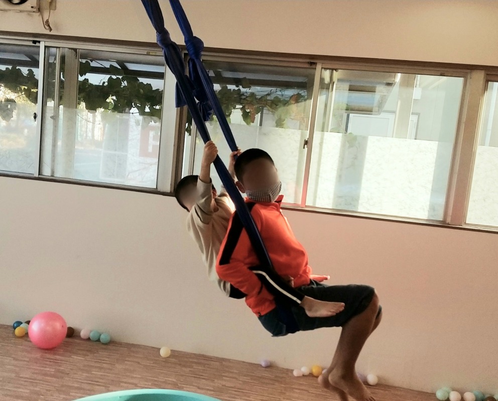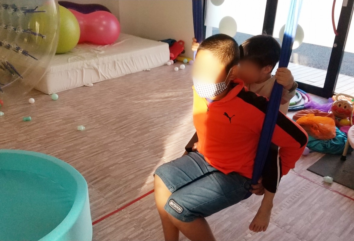 2021.10.26 おんぶでハンモック 日々のこと 大きいお兄ちゃんにおんぶしてもらってハンモック。落ちないように、優しく揺らしてもらっています。ハンモックから降りても、お兄ちゃんからはおりたくないようです。