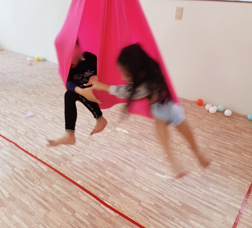 二人で一緒にハンモック。
