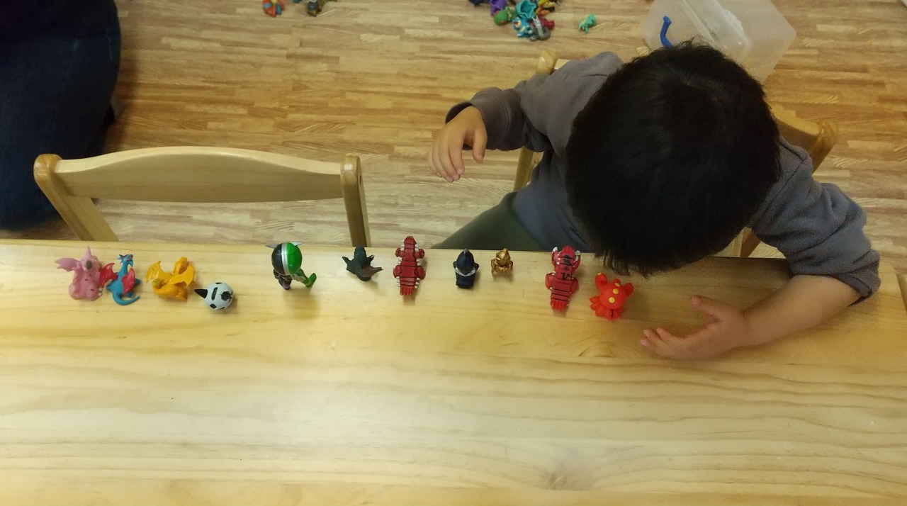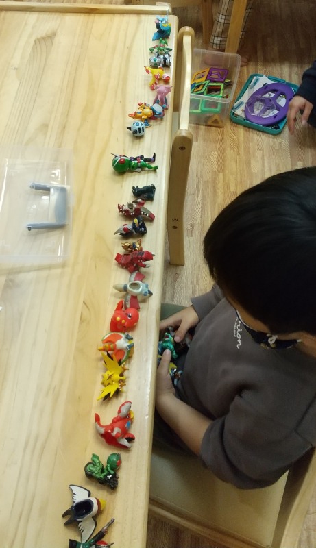 2021.4.14 いっぱい並べたよ! 日々のこと おやつの後の、イスに座って静かにあそぶ時間。とても集中して並べています。こんなにたくさん並べたよ!お片付けの音楽がかかってもまだ並べたたかったけど…写真を撮ったら気持ちを切り替えてお片付けすることができました。がんばったね!