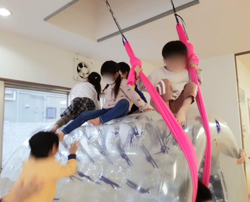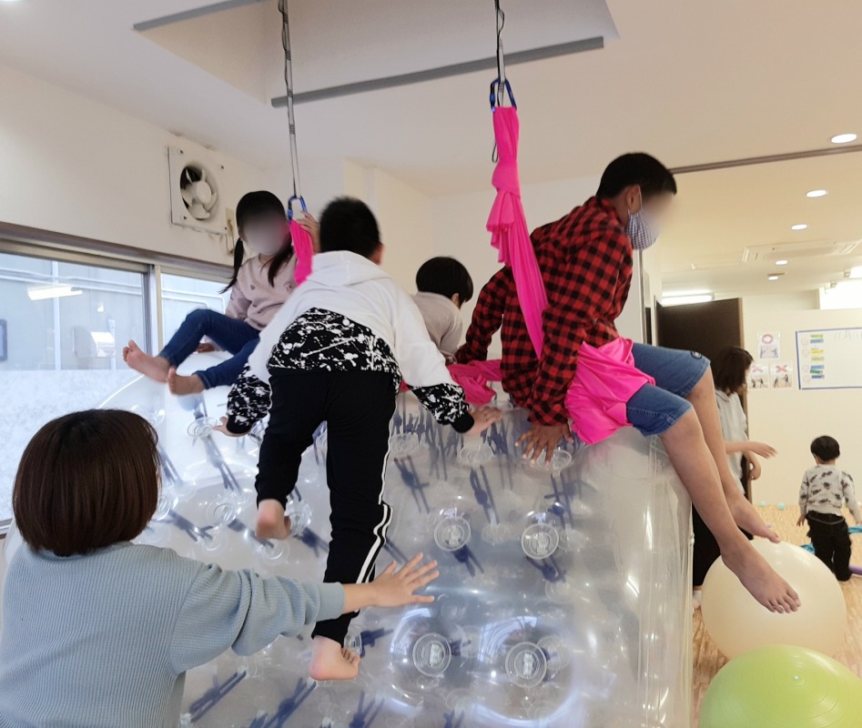 2021.11.16 サイバーホイール☆ハンモック 日々のこと 今日は、ハンモックとサイバーホイールを組み合わせたあそびで賑わっていました。おもしろそう、楽しそうって思うと、すぐに集まってくる子どもたち。「楽しい!」「もっと!」「できた!」あそびが盛り上がっている時、子どもたちの「やりたい!」が溢れています。全身を使った自発的なあそびが、知らず知らずのうちに発達を促していきます。