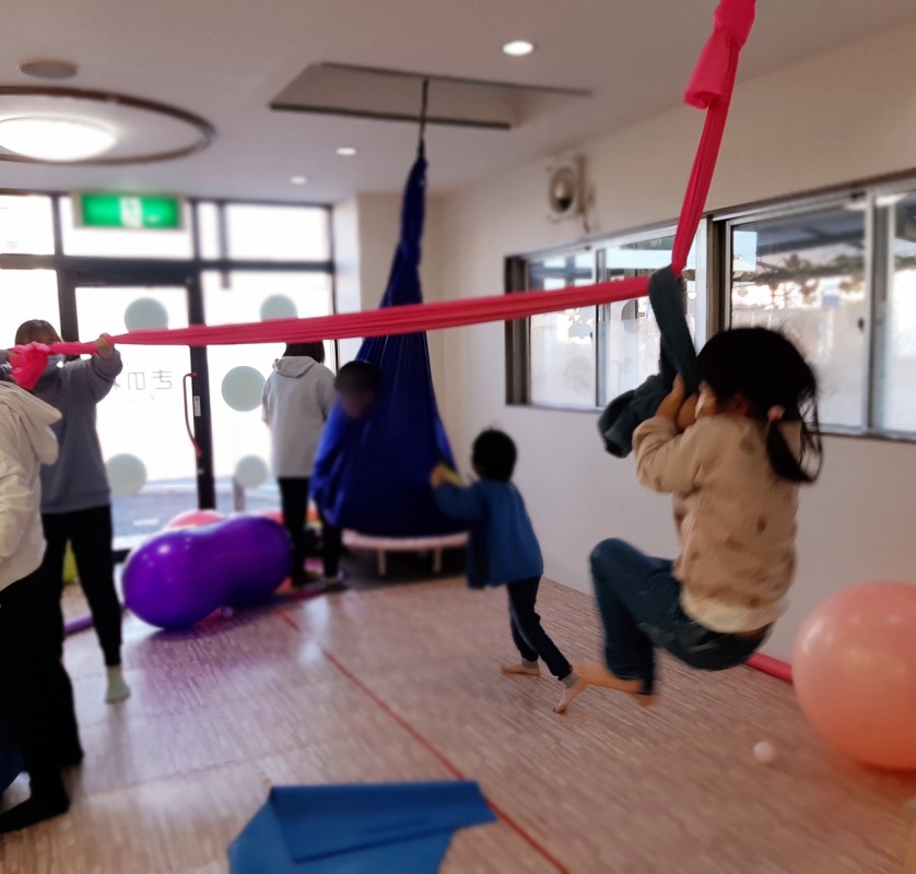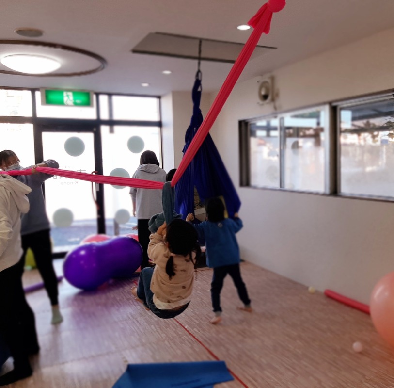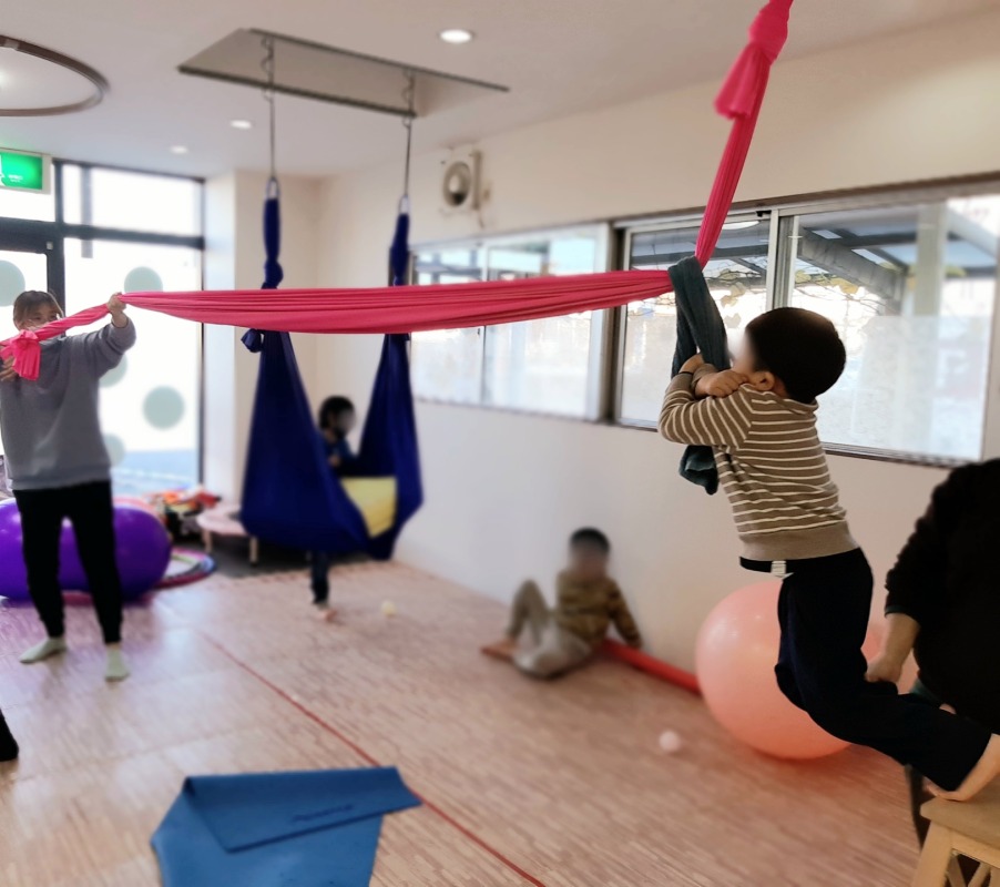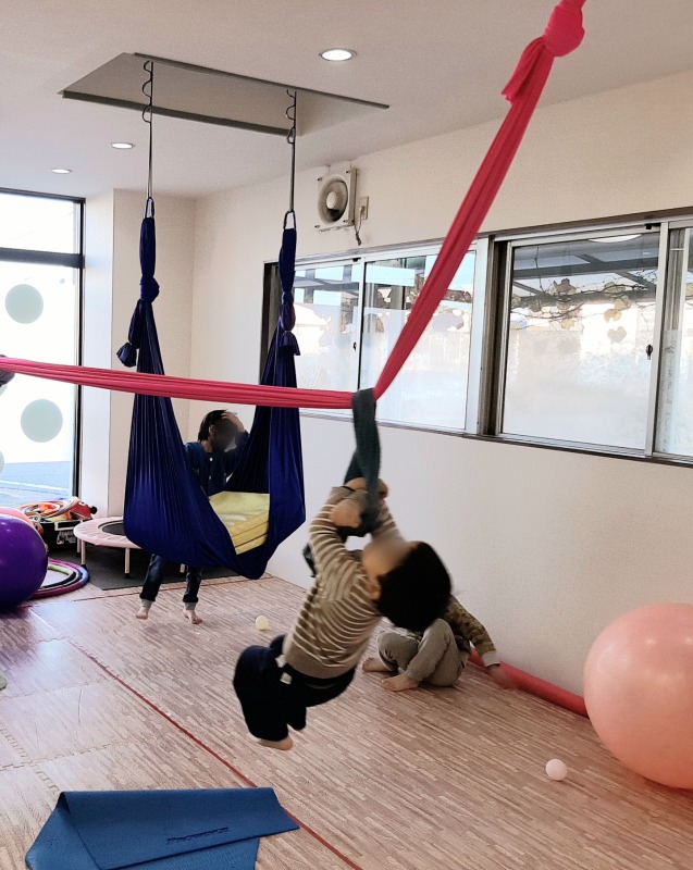 最近はハンモックをアレンジしたいろいろなあそびが流行っているきのね。