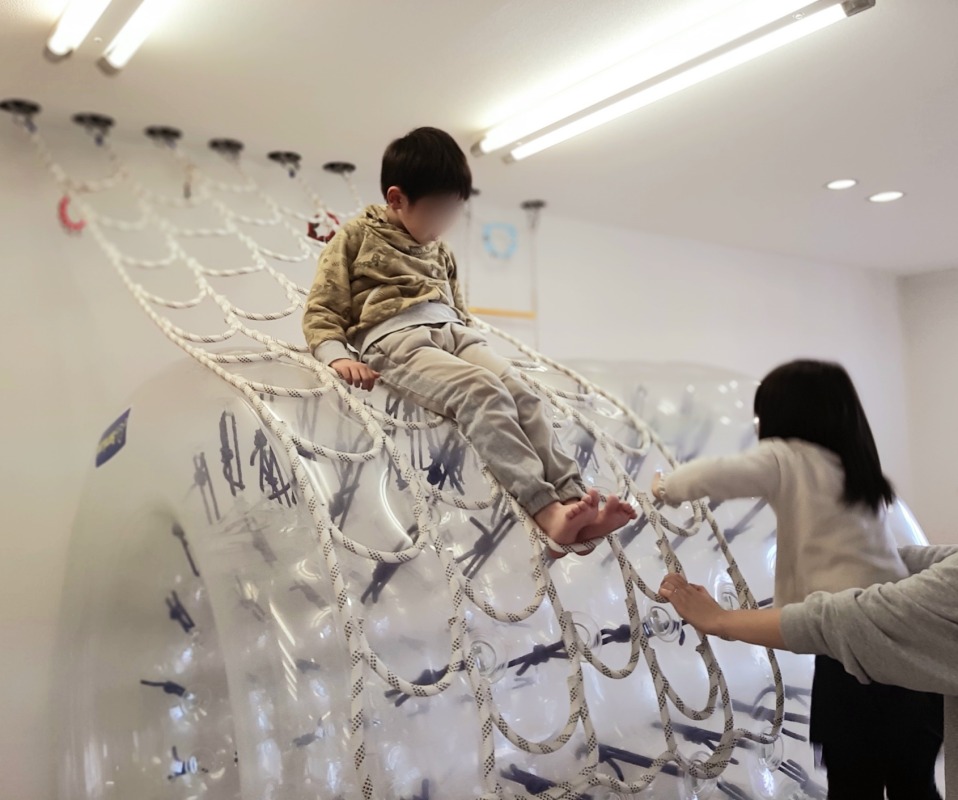 2021.12.13 組み合わせあそび 日々のこと サイバーホイールとクライミングネットを組み合わせて。きのねにある遊具と限られた空間の中で、子どもたちはあそびの可能性をどんどん広げていきます。時にはうまくいかないこともあります。「トライ&エラー」をたくさん経験しながら、子どもちは「主体的に学ぶ力」を身に付けていき、それは「生きる力」につながっていきます。