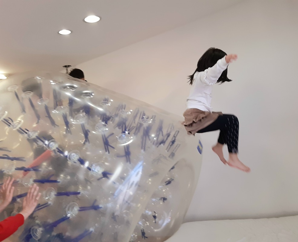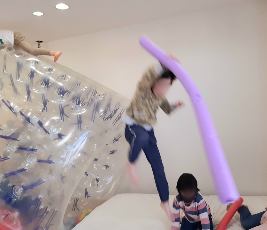 2021.12.23 二人でジャンプ 日々のこと 二人で息を合わせて…ジャンプ!ちょっと足並み揃いませんでしたが、カッコよくジャンプできました。体を動かすことが大好きな木曜日メンバー。今日もサイバーホイールの上は大にぎわいです!