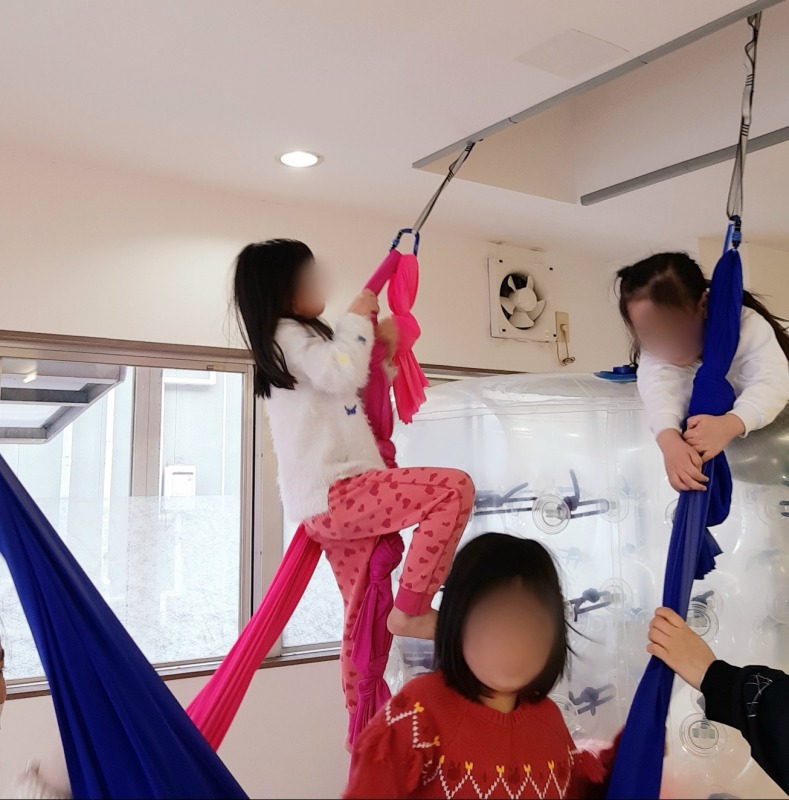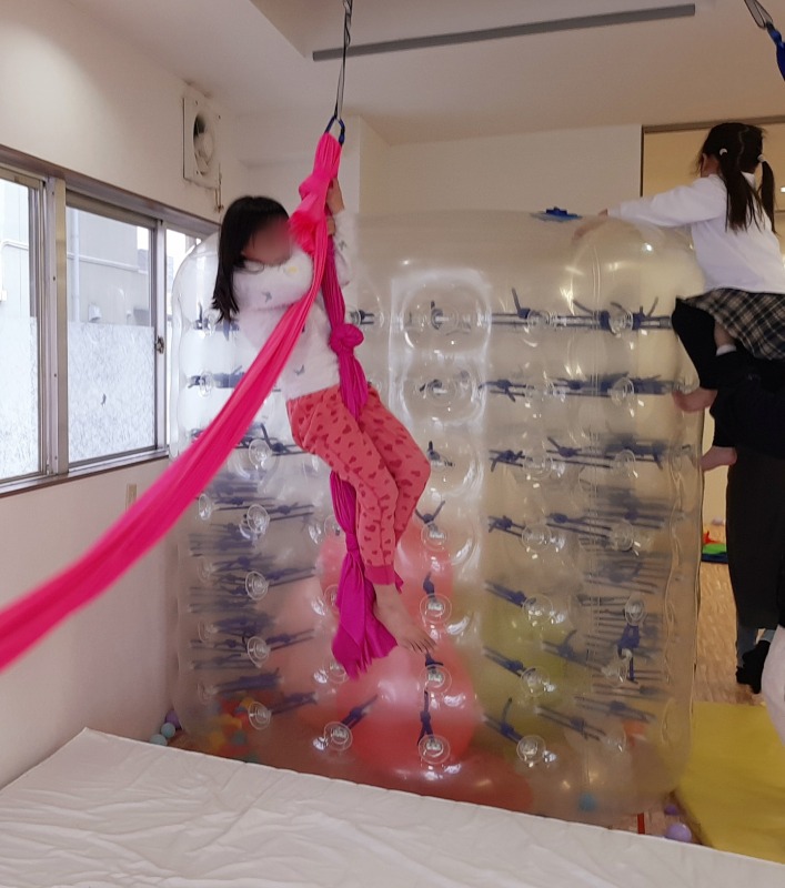 サイバーホイールとハンモックを組み合わせて、今日も元気に体を動かします。