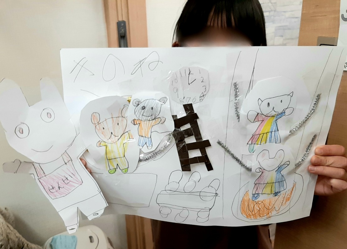 折り紙やモールを使い。きのねの日常を表現してくれました。